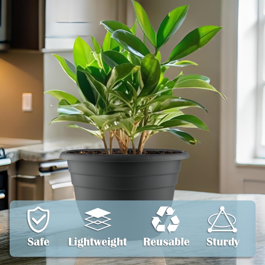 - Durable Planters: Made from thick, sturdy plastic with reinforced edges and bottoms for long-lasting use.
