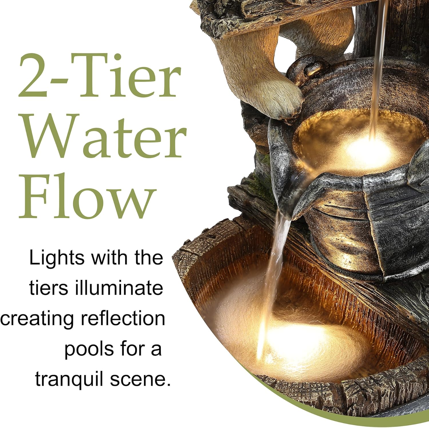 LuxenHome Water Fountain Outdoor, 25" Whimsical Puppy Dog Resin Outdoor Water Fountain with LED Lights, Decorative Garden Waterfall Fountains Indoor and Outdoor for Patio, Garden Decor