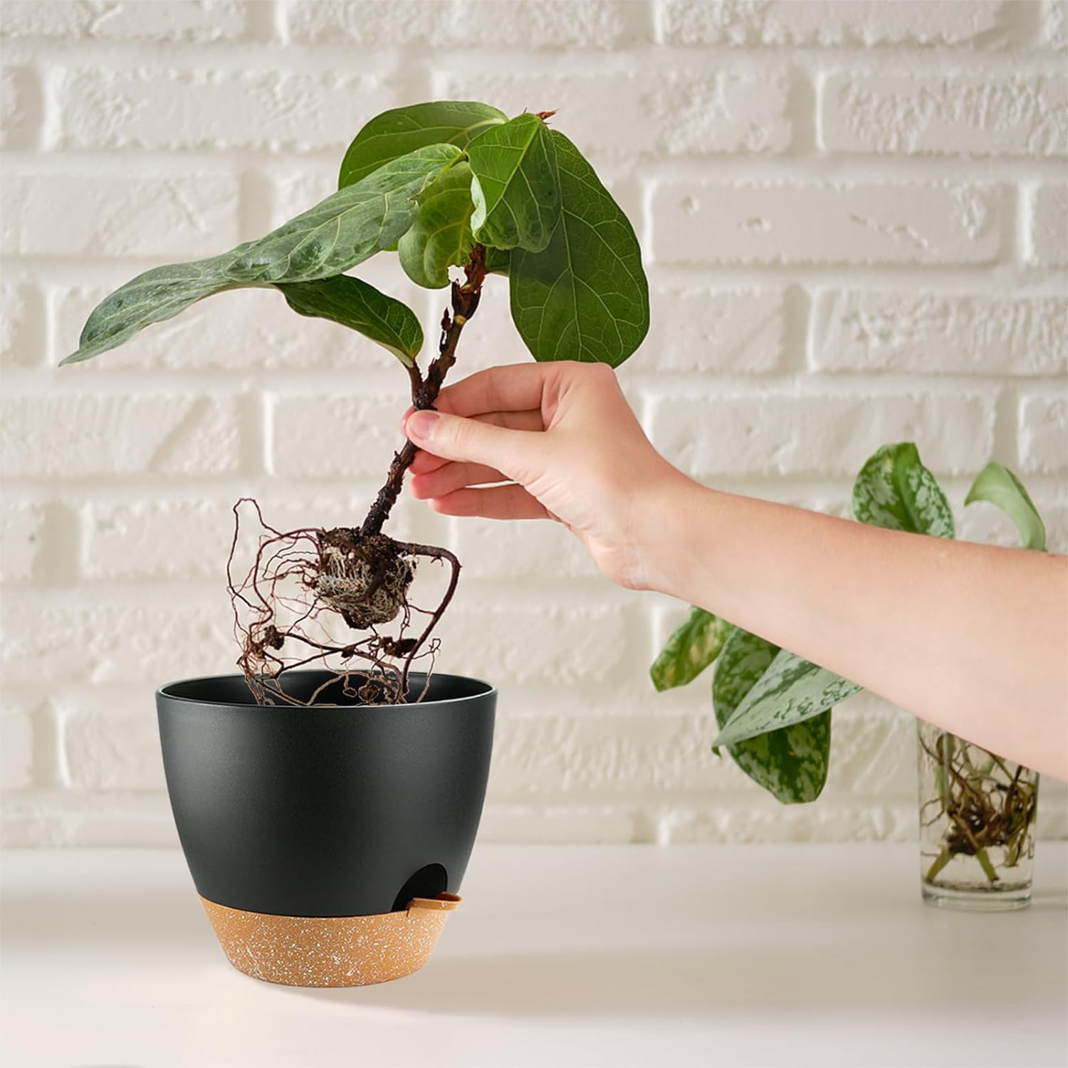 - SUN-E Self Watering Planter, precisely brings you such a tranquil oasis.Not just a tool for nurturing plants,but also a manifestation of the aesthetics of life.The planters seamlessly integrate the beauty of nature with modern design elements.The varying sizes offer flexibility in arranging plants,the contemporary finish adds a touch of sophistication to any space.With their optimal drainage and watering system,the planters provide the ideal environment for your beloved indoor plants to thrive.