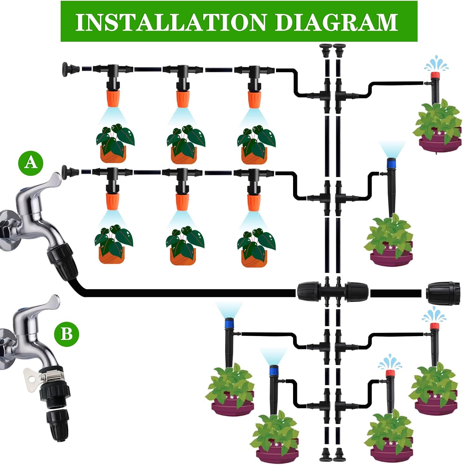 - Easy Installation: No digging or plumbing skills required! Just cut the tube, connect the nozzle or dripper to the fitting and turn on the faucet to start the plant drip irrigation system.