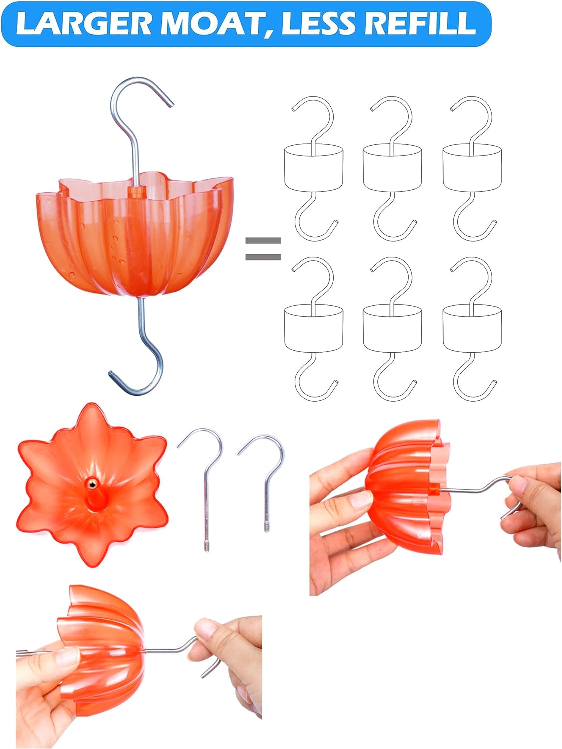 Ant Moat for Hummingbird and Oriole Feeders to Guard Against Ants Protecting The Sugar Nectar Water, Cleaning Brushes Included (Red 2 Pack)