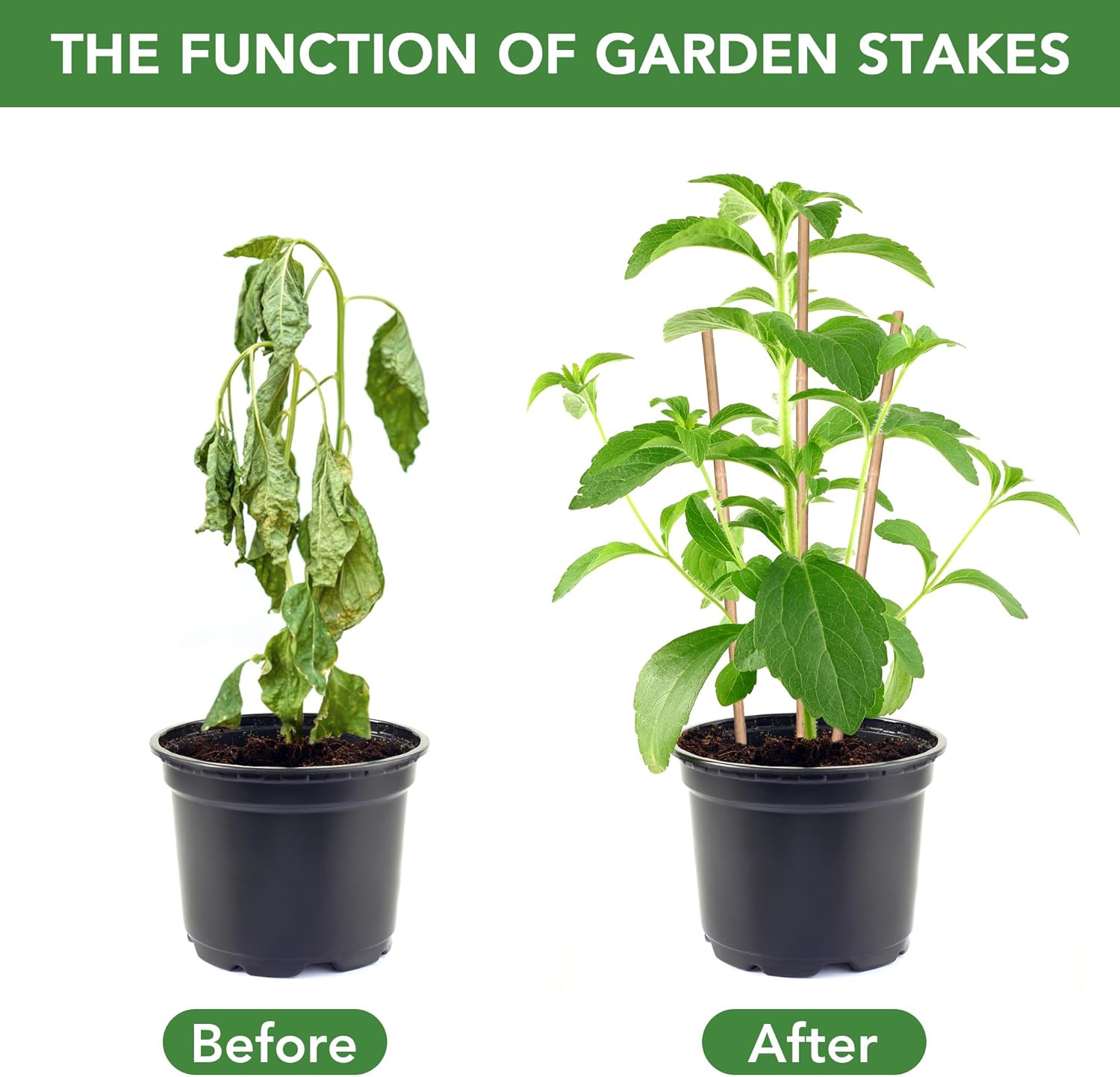 - NATURAL BAMBOO STAKES: Our plant stakes are made of natural bamboo that has been fumigated and carefully selected for strong quality and durability. All bamboo stakes are handmade and reusable which are a must-have for any gardener.