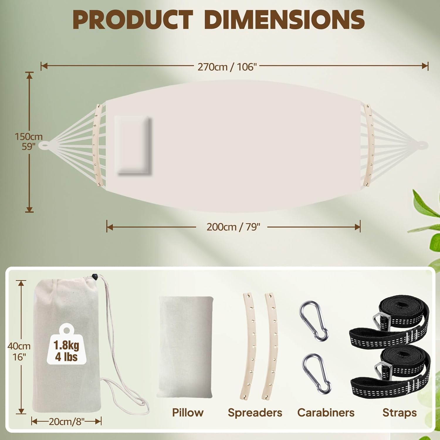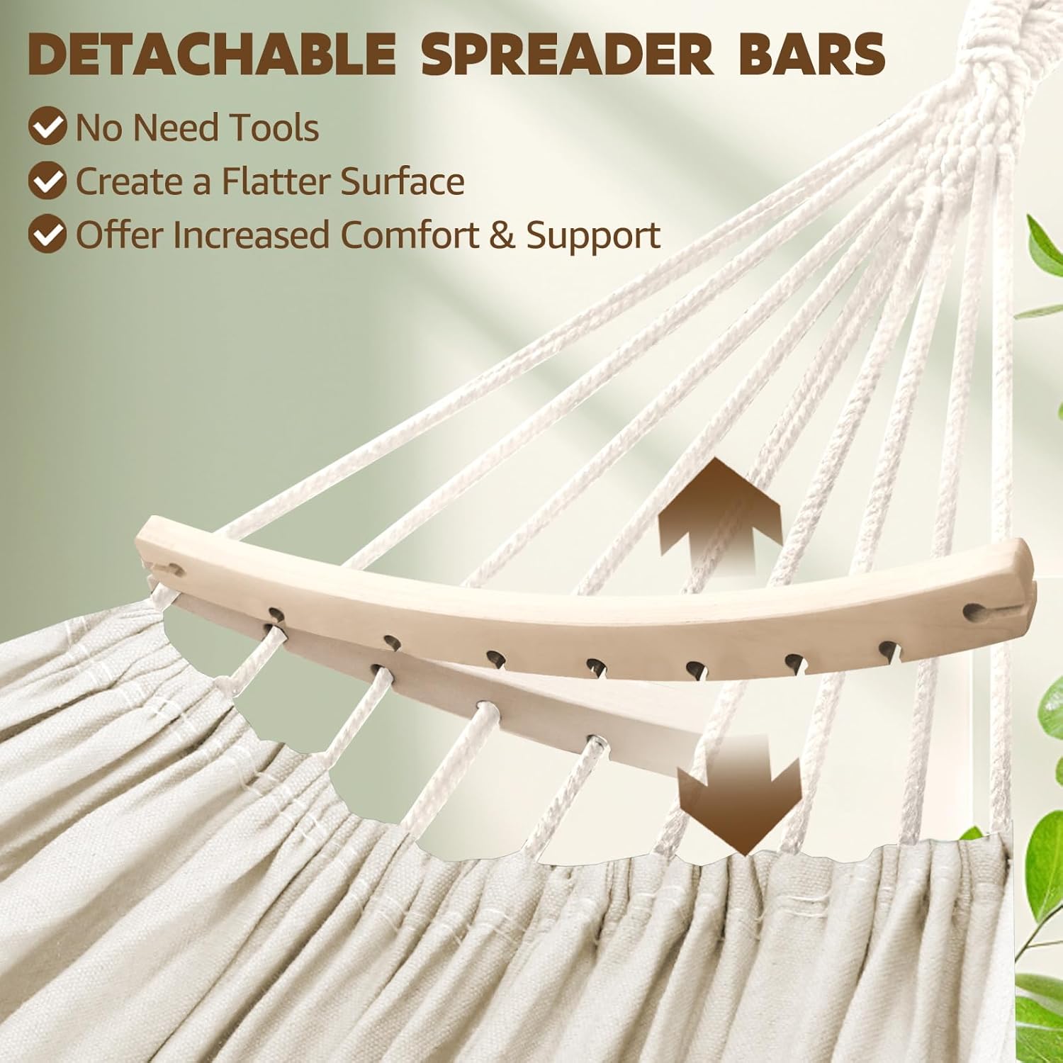 Chihee Cotton Hammock Large Soft Breathable Camping Hammock Holds Up to 660lbs Portable Tree Hammocks with Detachable Spreader Bar Pillow 2 Strong Webbings 2 Carabiners Patio Garden Indoor Outdoor