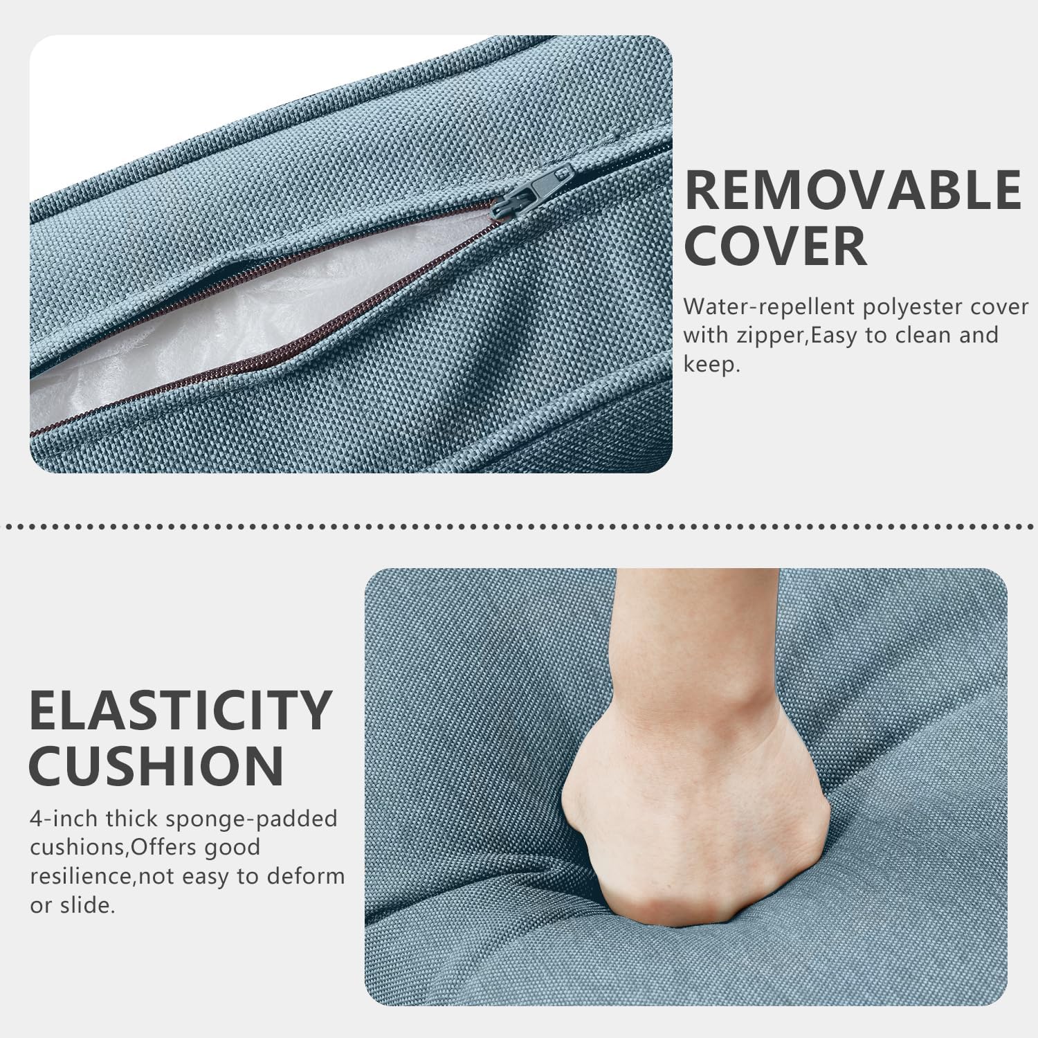- 【Comfortable 4'' Thick Cushions】This garden furniture set features deep and wide seats with 4-inch thick sponge-padded cushions.Offers good resilience, not easy to deform or slide, also protect your lumbar and offer a comfortable sitting experience.Water-repellent polyester cover with zipper,Easy to clean and keep.