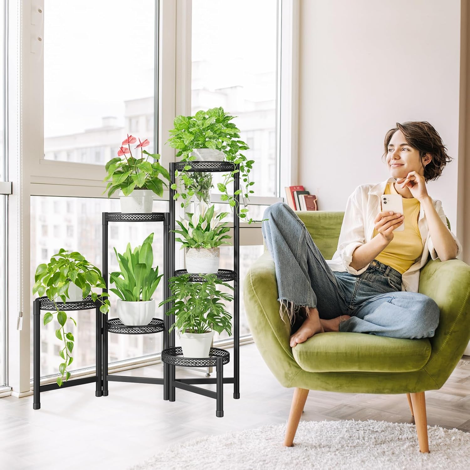 - Tiered Trays for Growth: With a tiered structure, the tiered plant stand keeps leaves well spaced for healthy growth. Each plant can catch sunlight from multiple angles, helping them thrive and creating a vibrant and flourishing green display
