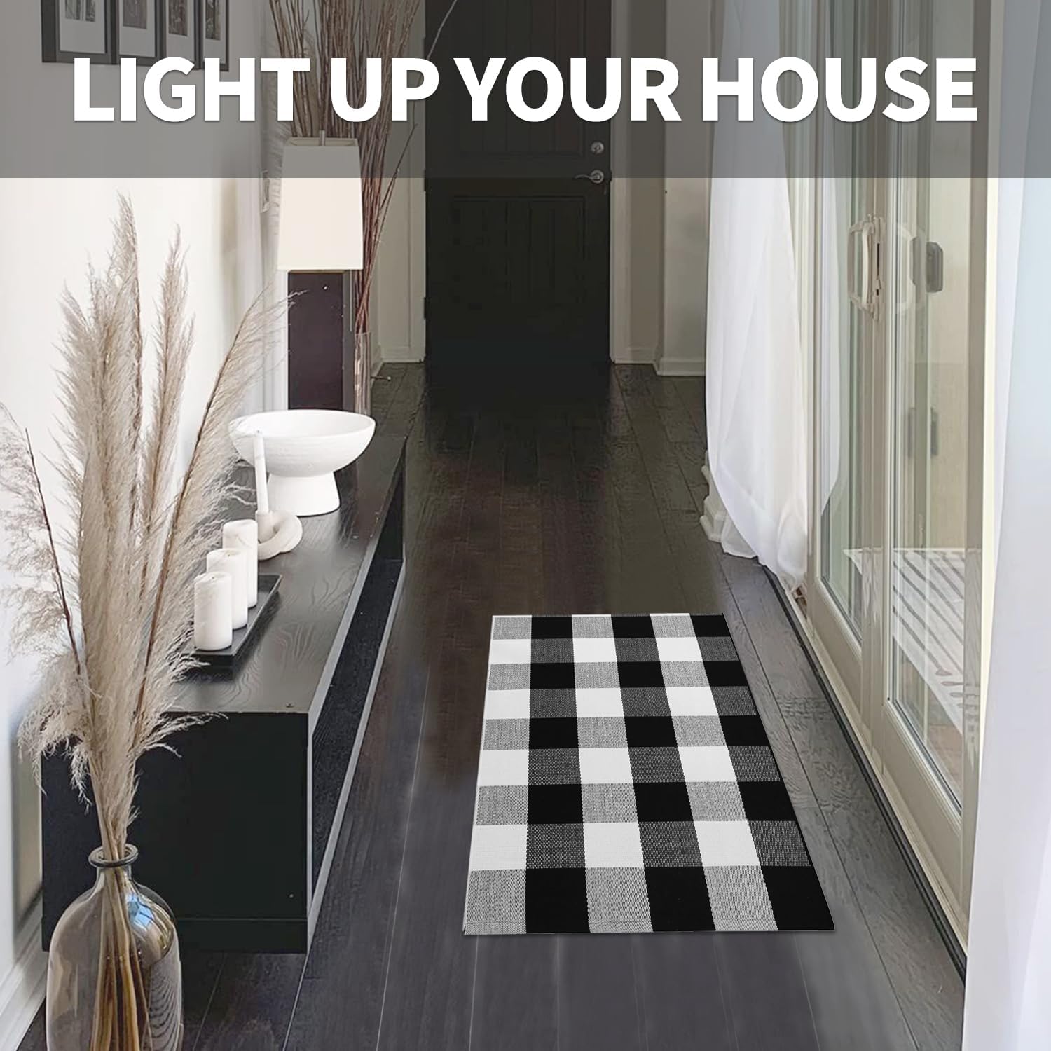 - Easy to Clean: This black and white checkered rug is simple to maintain with machine wash or vacuuming to remove dirt. The rug is sturdy and can be tumble dried on low. Keep your door rug fresh and clean with minimal effort. NOTE: Cotton rugs normally shrink slightly after washing