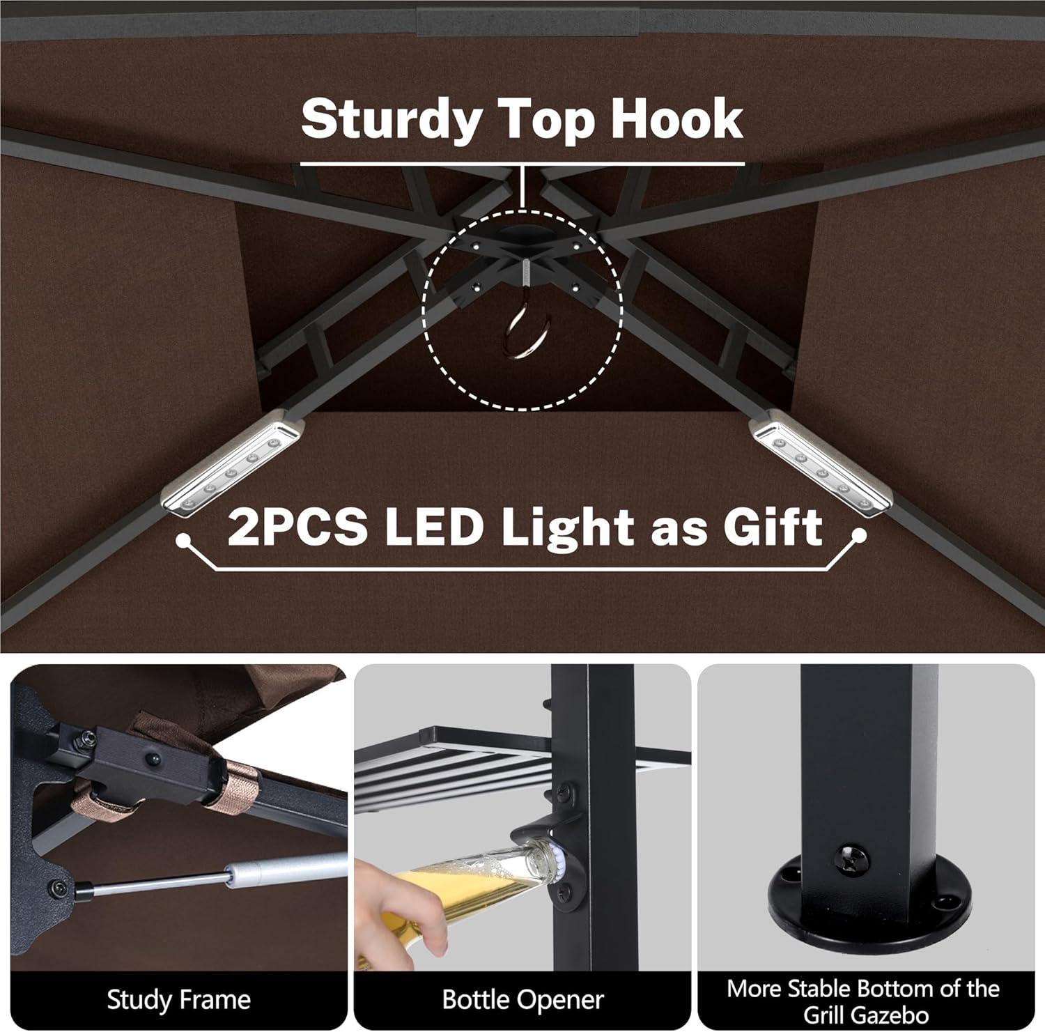 MASTERCANOPY 11 x 5 Grill Gazebo with Extra Side Awning Outdoor BBQ Gazebo with 2 LED Lights for Patio Party Backyard Picnic(Brown)