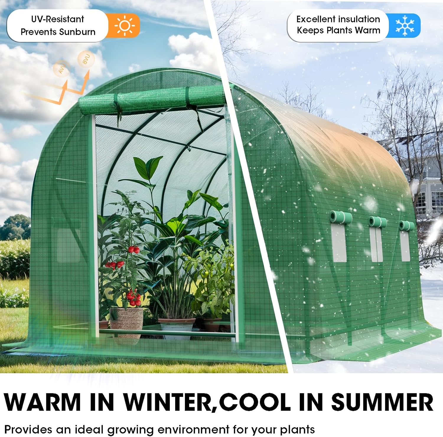 Walk-in Tunnel Greenhouse,Portable Plant Hot Housewith Dual Zippered Screen Doors & 6 Screen Windows Heavy Duty Plastic Plant Warm House with Reinforced Frame (10x10x6.6 FT)