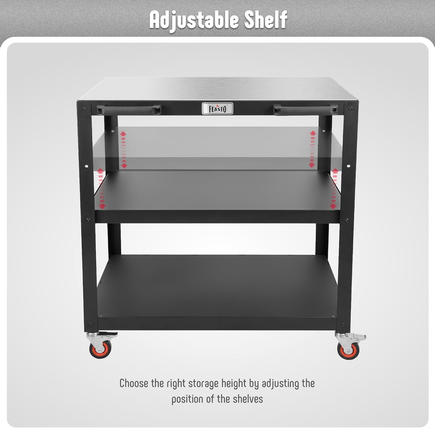 - Ample Space: The outdoor prep table has 3-Shelf design and it facilitates an ample space for food preparation or ideal location for pizza oven,serve you outdoor or indoor needs such as pizza oven stand table.It even meets the needs of commercial kitchens