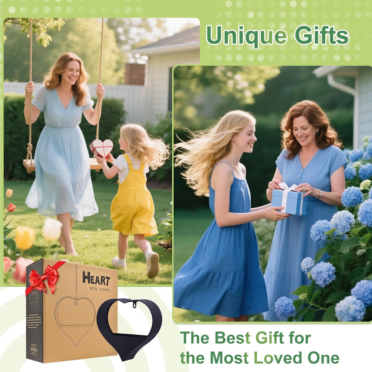 Metal Plant Hangers Indoor and Outdoor: Birthday Gifts for Women Mom Wife Garden Lovers - Black Heart Shape Hanging Planters Perfect for Window Wall Living Room Office Decor