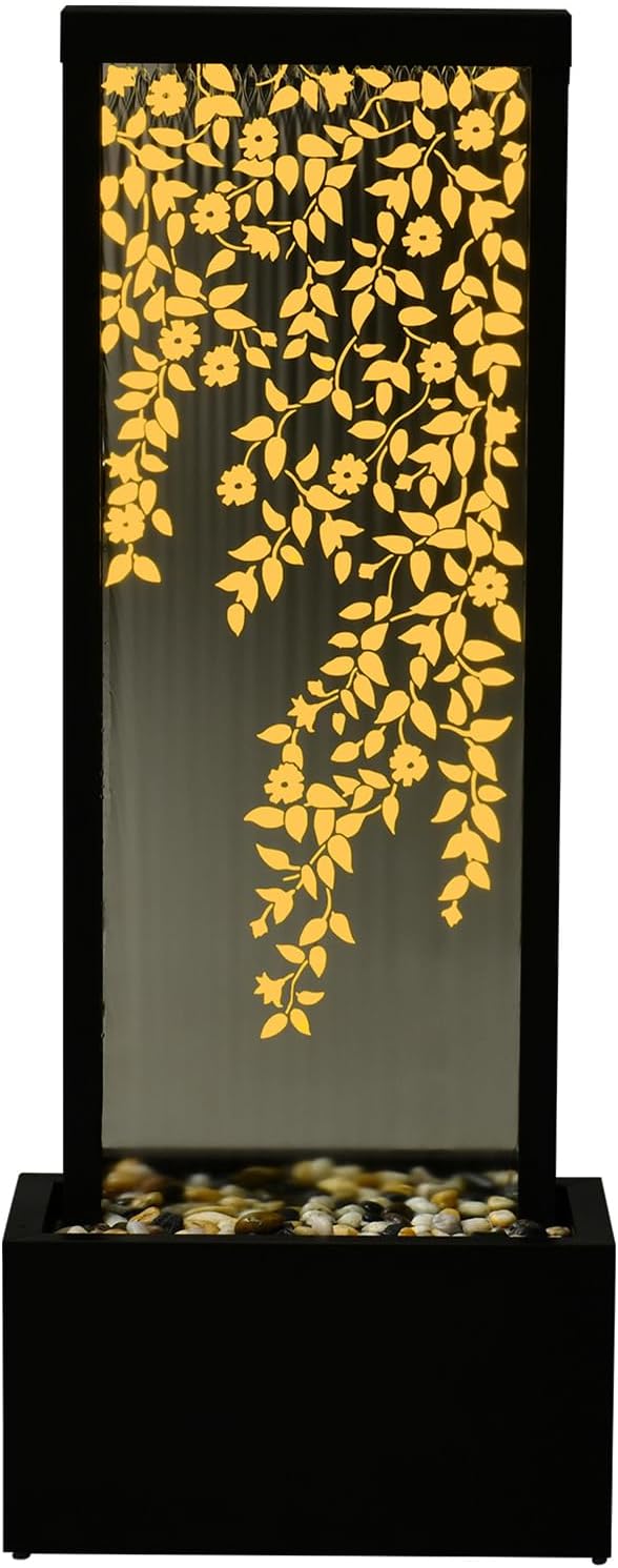 46" H Fountains Outdoor Indoor Tall Waterfall Fountain with LED Lights Large Modern Mirror Fountain for Garden,Patio,Backyard,Home,Black Silver Golden