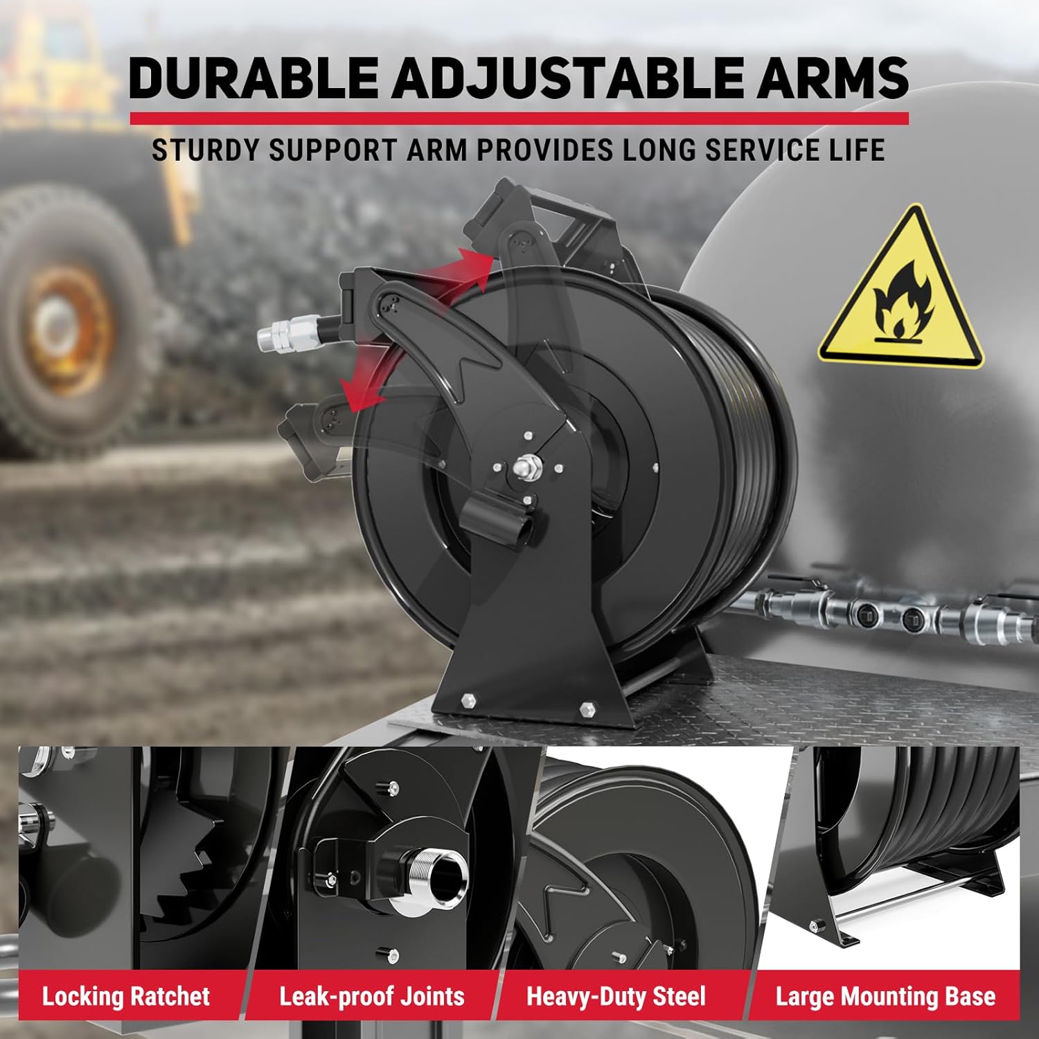 - Style : Auto Rewind, Heavy Duty Steel, Adjustable Dual Arm, Industrial Hose, Professional Construction, All-weather Auto Rewind, Heavy Duty Steel, Adjustable Dual Arm, Industrial Hose, Professional Construction, All-weather