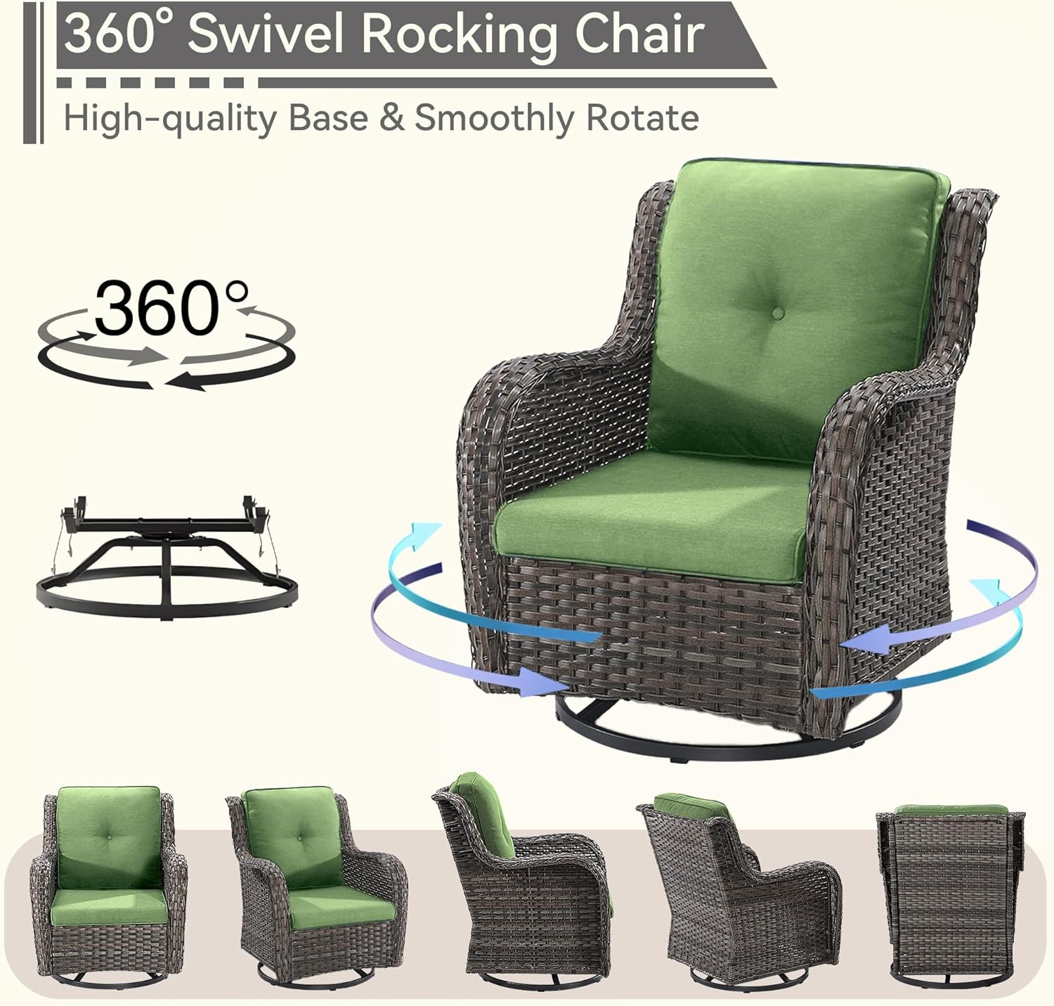 - [Pefect Conversation Vibe] This set will come 6 pieces in total, including: 1 Three-Seat Sofa, 2 Swivel Rocker Chairs, 2 Ottomans and 1 Side Table. It's an ideal set which can create a cozy and warmful conversation vibe