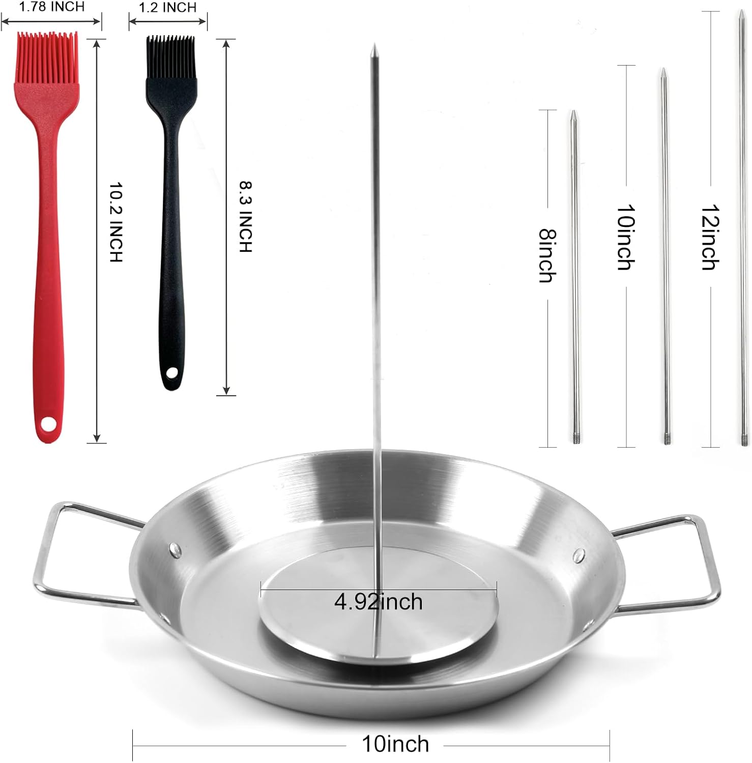 Fengzhe Al Pastor Skewer for Grill:Stainless Steel Vertical Skewer, Brazilian Spit Stand with 3 Spikes,2 Brushes,Ideal for Tacos Al Pastor,Shawarma, Kebabs on Smoker, Oven,with Fat Separator Tray