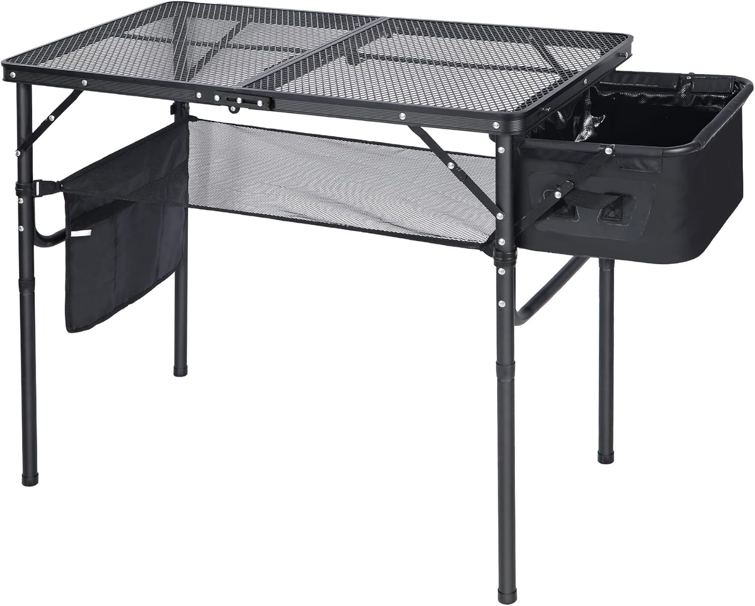 - [Large Storage Space] The table has a detachable mesh bag and a dish basin for storage. Keep small items in the bag and use the tabletop for the grill, food, or cards.