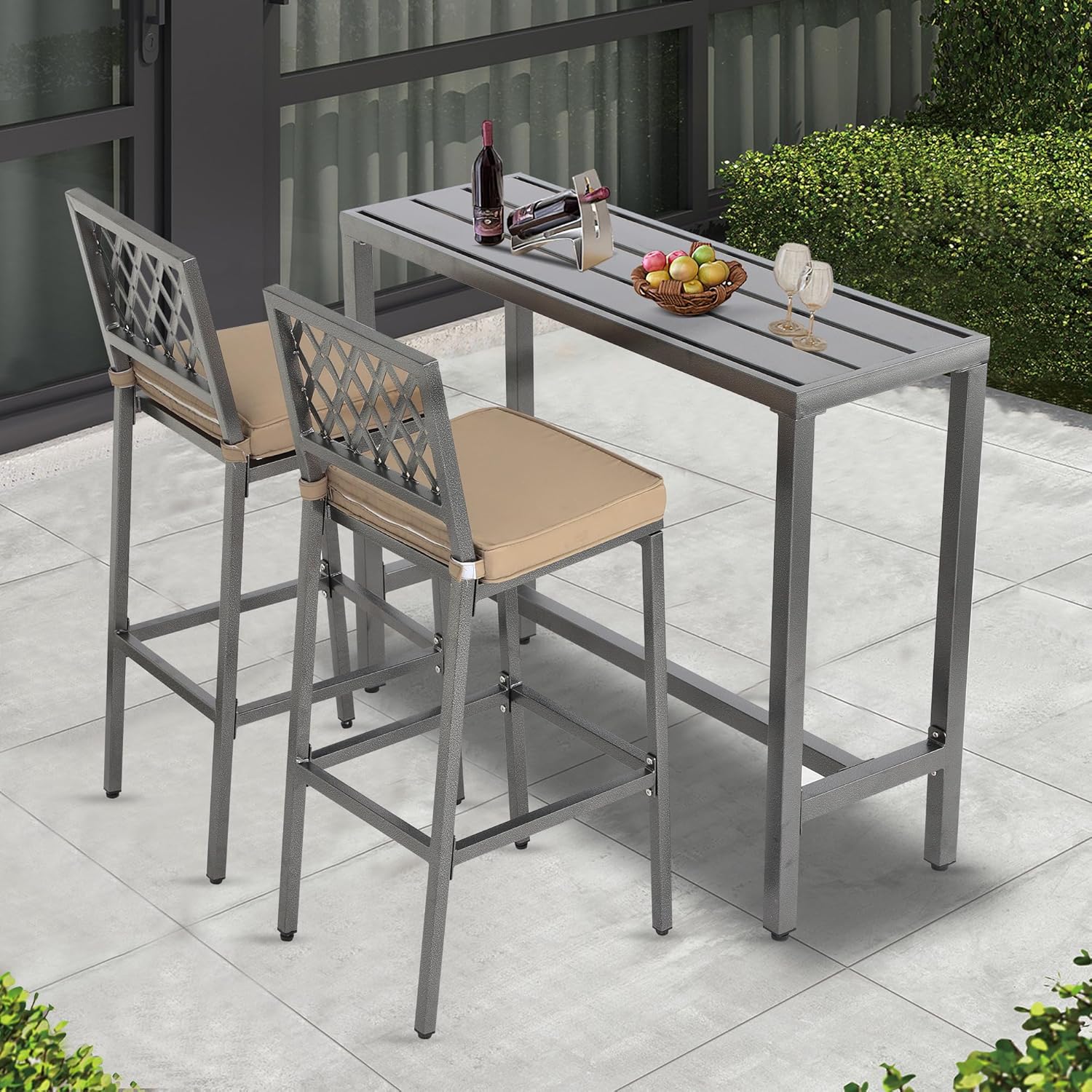 - Built to Last: Our patio pub set is made of reinforced metal frame, which is sturdy and durable for long time use. Besides, the powder coating makes the high dining bistro set weather-resistant, waterproof, and fade resistant, which is a great choice for indoor and outdoor use