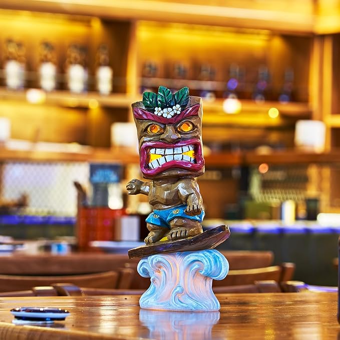 - 【PERFECT GIFT IDEA】The surfing tiki statue is 6.1x3.35x9.92inches in size, makes a perfect birthday/mother’s day/Christmas gift for family members, friends,tiki lovers or people who own a garden.It will light up their yard and bring a smile to their faces