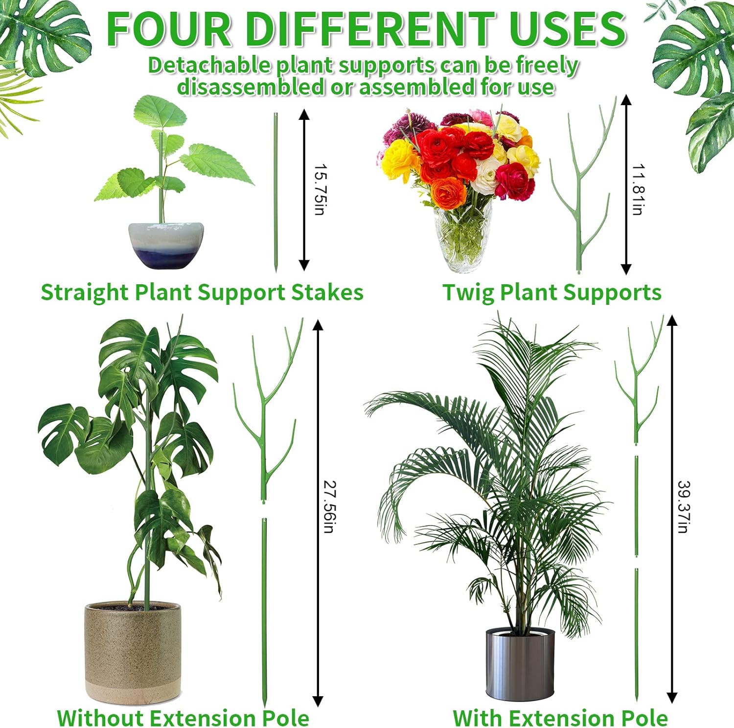 - 【Stable & Sturdy Support】Plant sticks support is easy to insert into the soil. Never wobbly or lean over. Provides firm and stable support for plant growth. Each plant support stake is 39.37in/100cm in height when assembled, tall enough for plants to stand on, and can easily help plants grow upwards and transition perfectly to the next growth stage. You can also use plant sticks separately, which is more suitable for small and medium plants. (Without extension pole, 27.56in/70cm in height.)