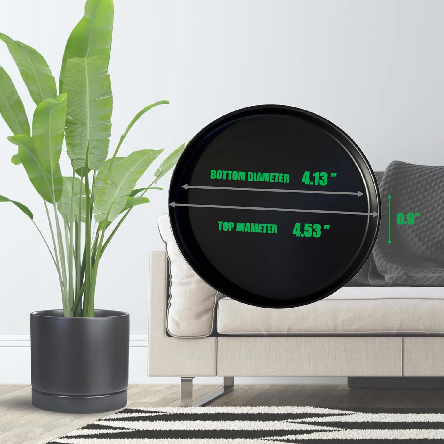 Plant Saucer Pot Tray Planter Saucers 4 in, 5 6 7 8 9 10 11 12 Inch Black 4 Pack for Indoors Outdoor, Durable Sturdy Ceramic Flower Drainage Tray for Glazed Pots Base ((4.5"/4.1"-Black)