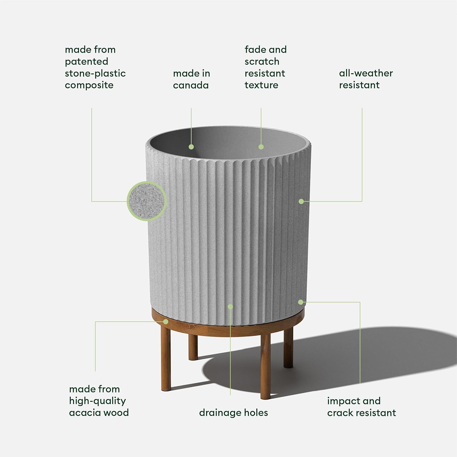 Veradek Demi Series Round Planter w/ Stand for Porch/Patio | Durable Plastic-Concrete & Wooden Stand | Modern Décor for Tall Plants, Flowers