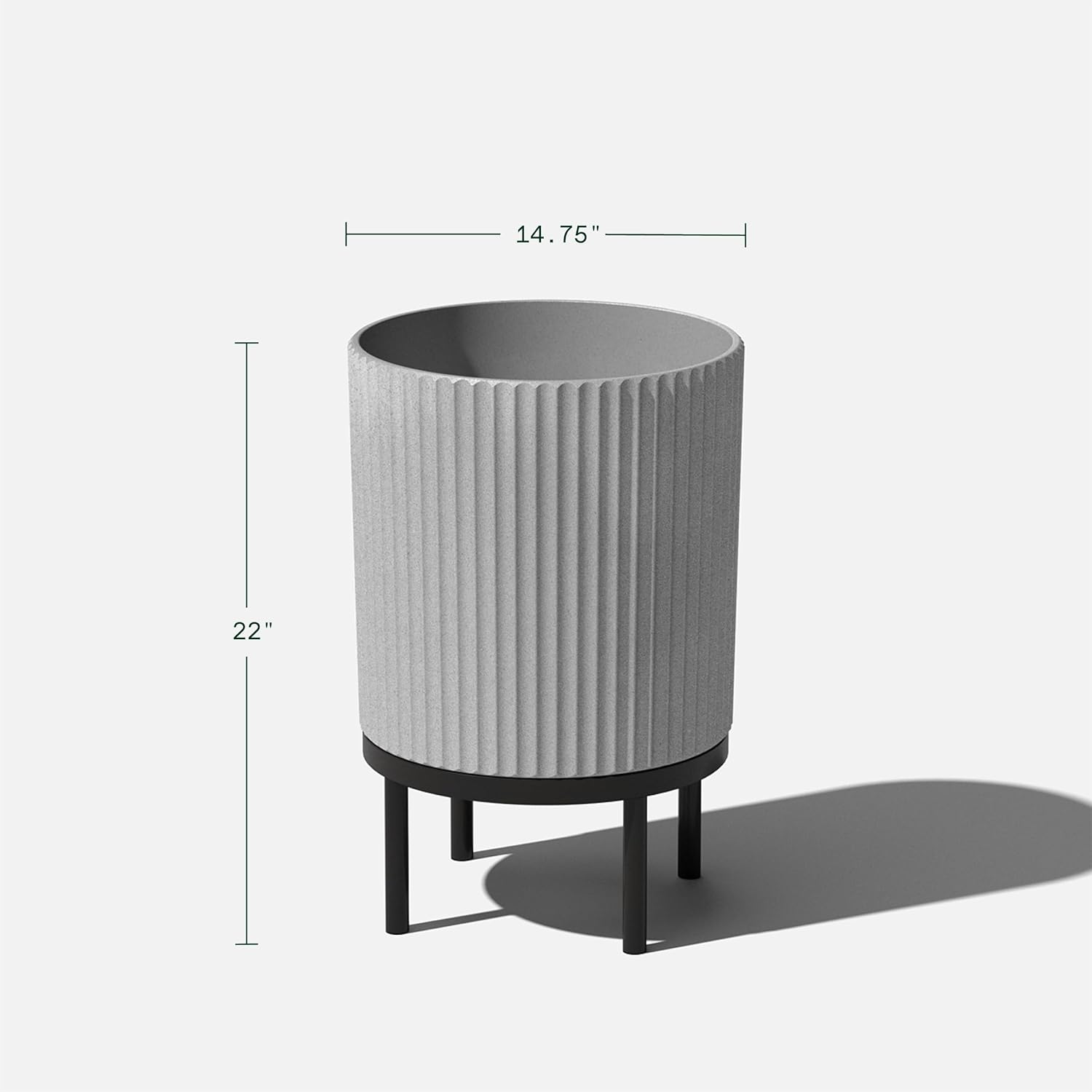 - DIMENSIONS & DETAILS: The Demi planter measures 14.75 Inches in diameter and 16 Inches in height. On the stand, the planter measures 22 Inches in height
