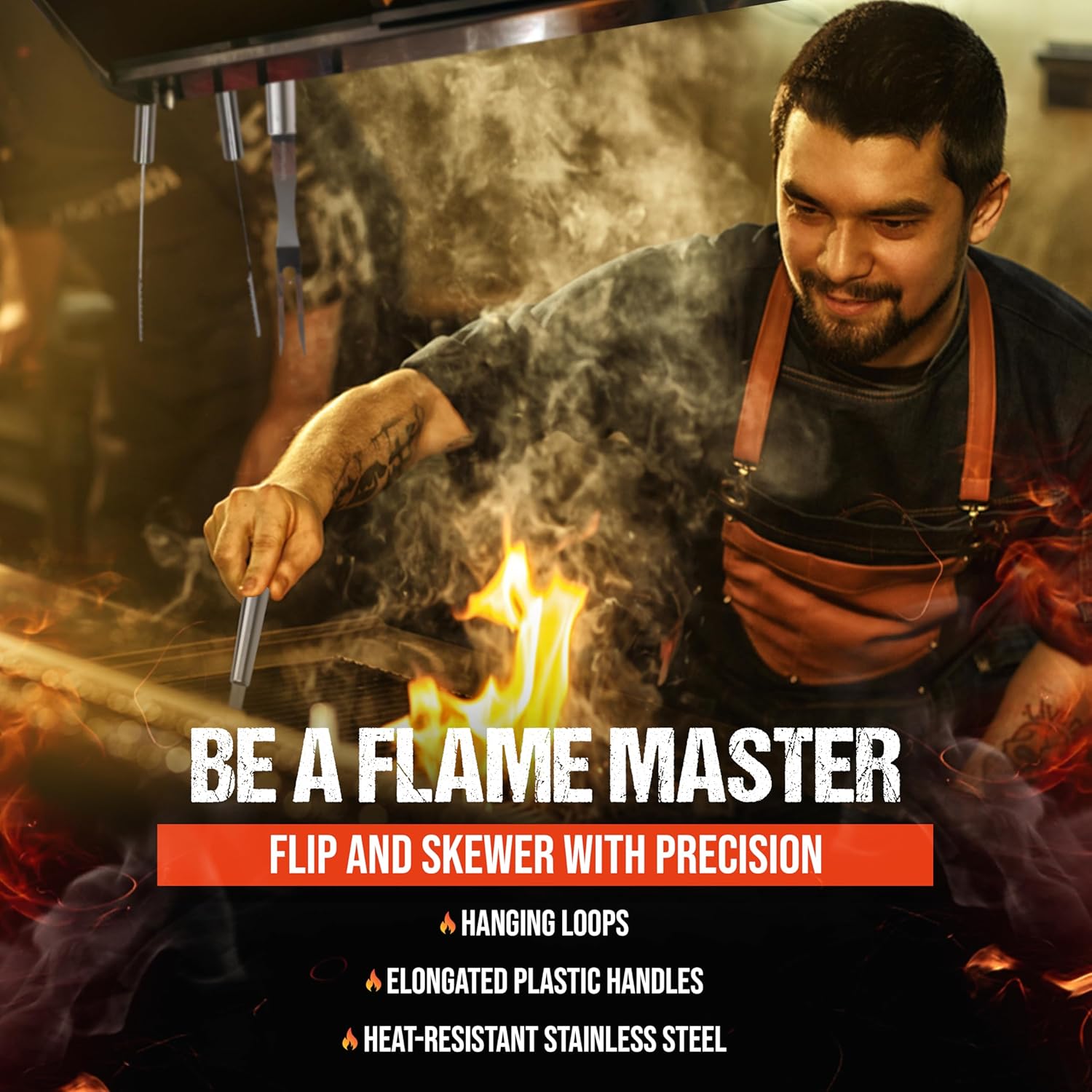 - EXCEPTIONAL QUALITY : This Grill tools set is made of high quality stainless steel that offers excellent durability and rust resistance, which means no more rusting, bending or breaking.
