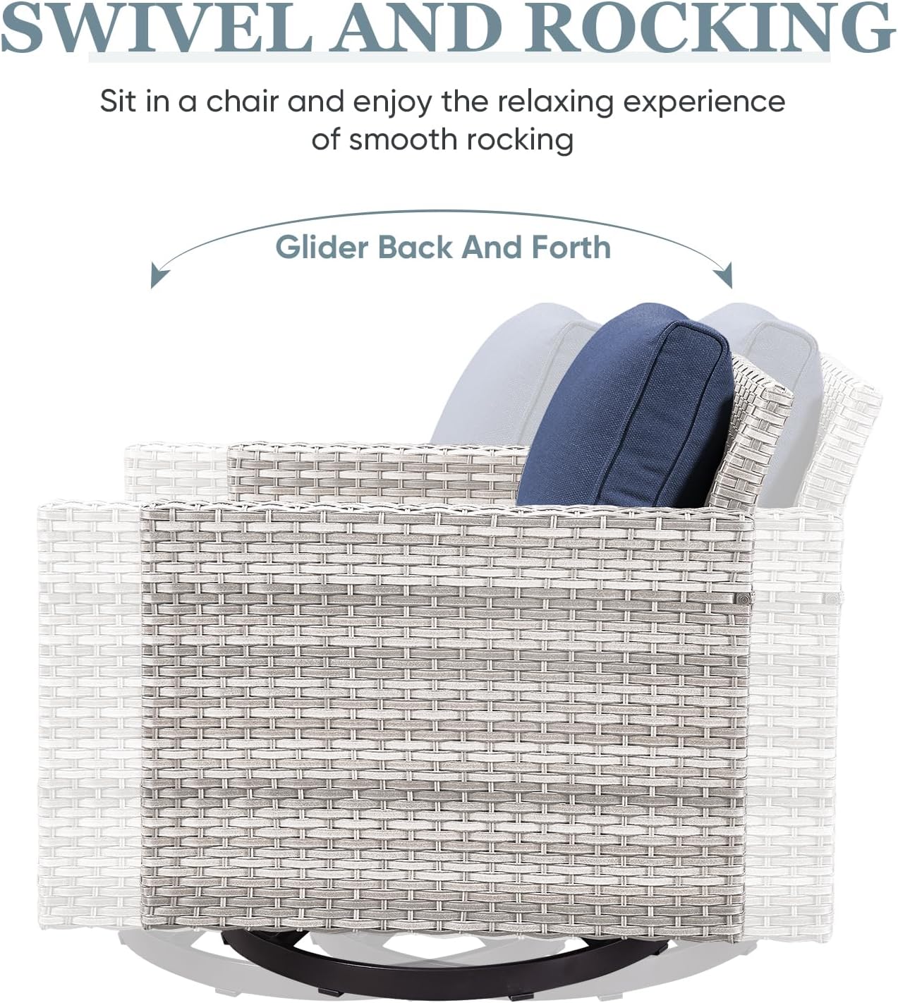 - 【360°Swivel Glider Rocker Chairs】Design of rotating 360 degree,swinging back and forth,You can easily turn your face away from the sun without moving the entire chair, or swing your seat like a cradle for the ultimate relaxation while listening to music or watching your children play outside.