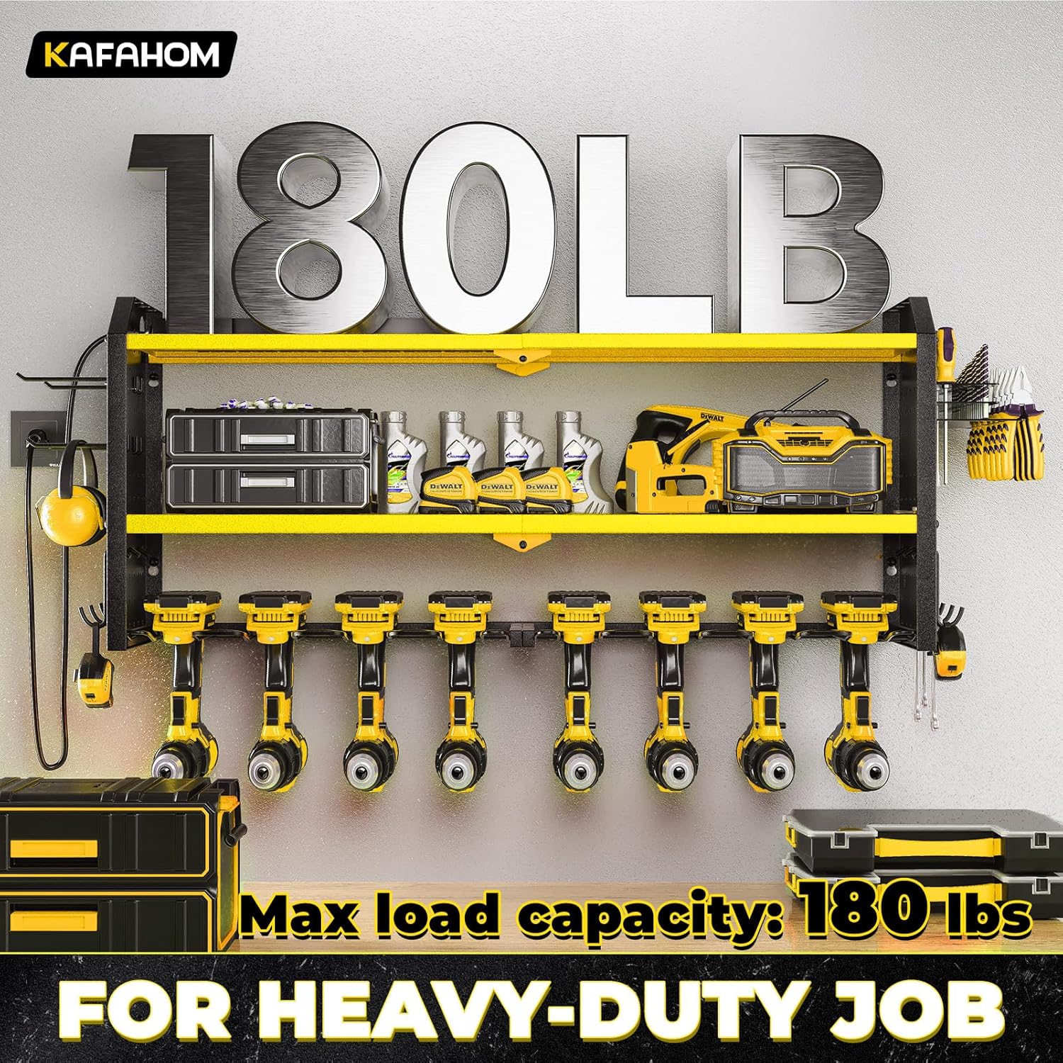- Robust Construction: Built to last, KAFAHOM tool box organizers and storage wall mount features a sturdy alloy frame and reinforced double-layered metal plates for exceptional load-bearing capacity. It's the ideal utility cordless drill holder for a wide range of tools and accessories.