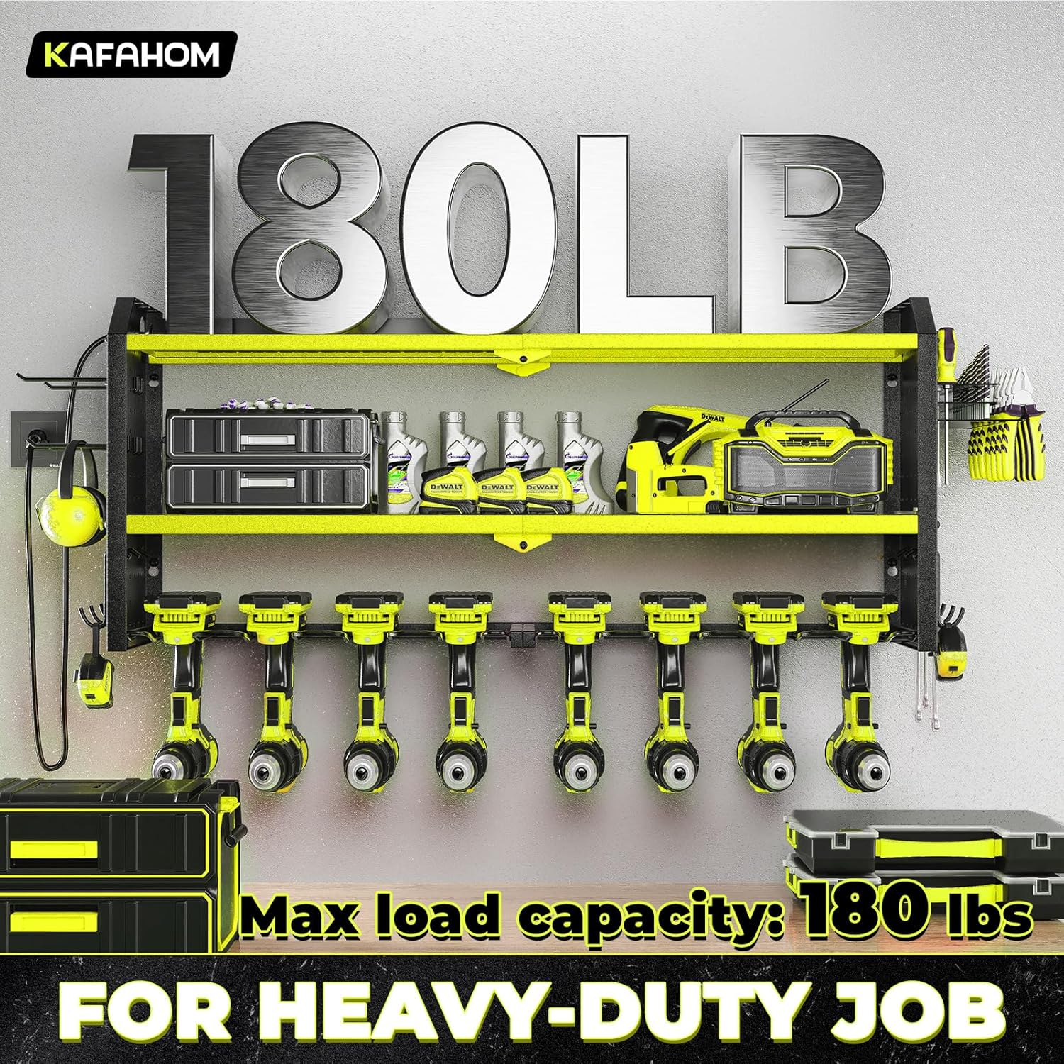 - Robust Construction: Built to last, KAFAHOM tool box organizers and storage wall mount features a sturdy alloy frame and reinforced double-layered metal plates for exceptional load-bearing capacity. It's the ideal utility cordless drill holder for a wide range of tools and accessories.