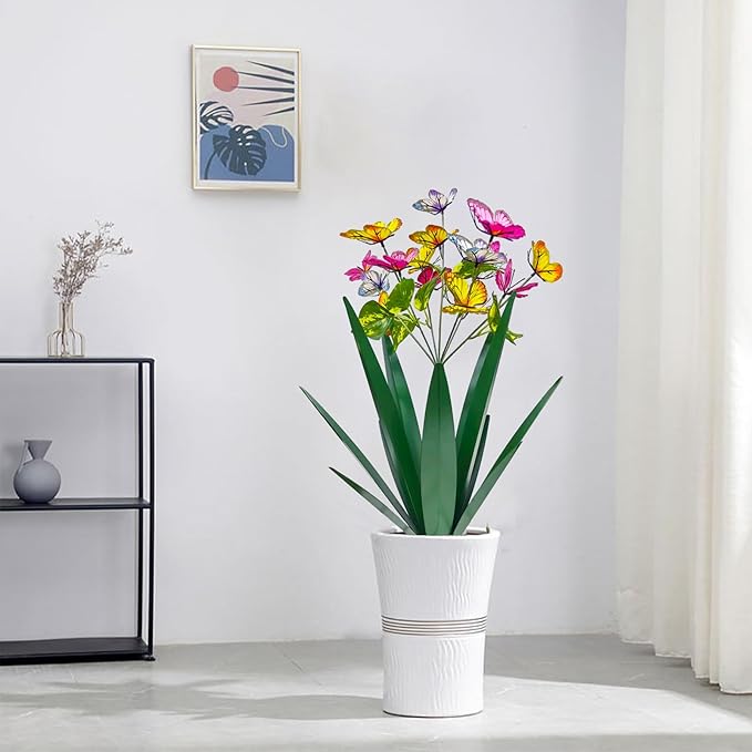- [Cute design garden peg decoration] : Wings can be opened or closed for various displays. The thin metal stakes are easy to hide, creating the illusion of a real butterfly. Their vibrant colors and lifelike appearance will transform your garden into a beautiful and charming oasis.