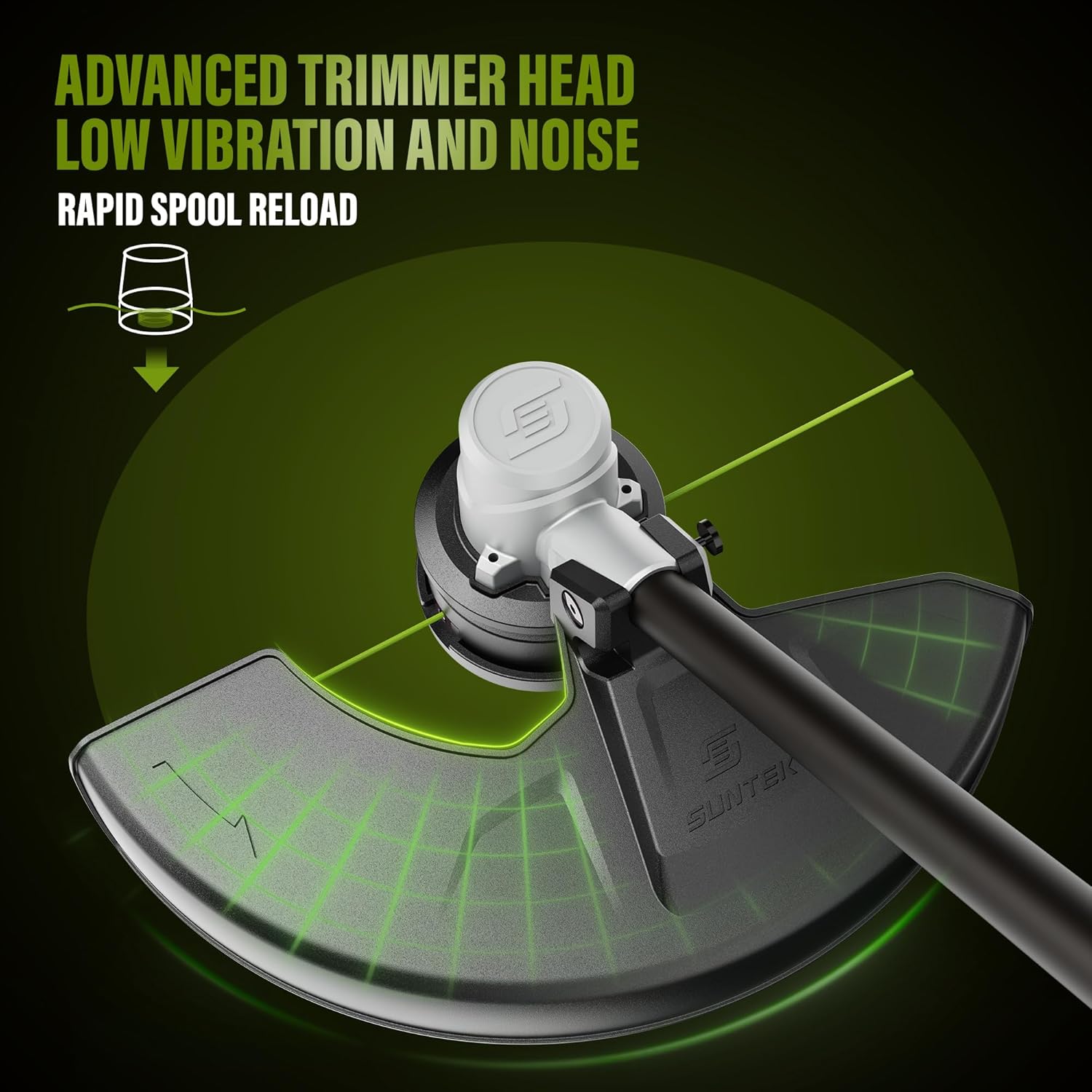 - Powerful Motor - The Suntek 15 inch cordless string trimmer features an advanced DIGI-Brushless motor, providing unmatched gas-like power and exceptional cutting efficiency with its direct output of dual cutting lines.