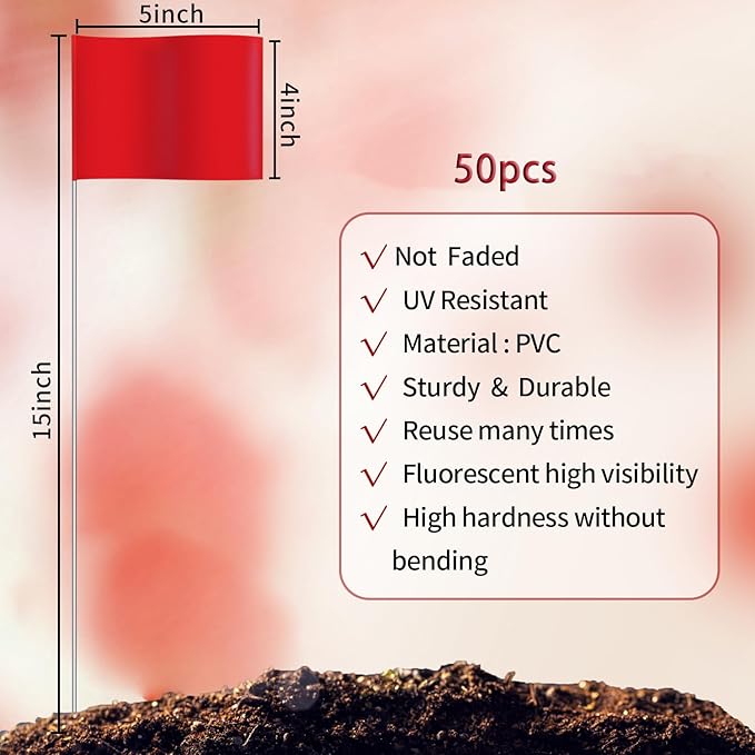 - ⛳【OTHER COMMERCIAL USES】- Maintain workplace safety during construction! Use them to clearly demarcate an area, point out the location of underground cables or pipes. Marking flags are essential during a ground survey for drawing.