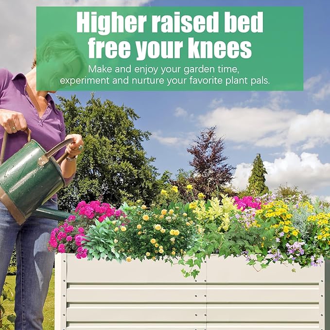 SnugNiture Galvanized Raised Garden Bed 8x4x2FT Outdoor Large Metal Planter Box Steel Kit for Planting Vegetables, Flowers, Beige White