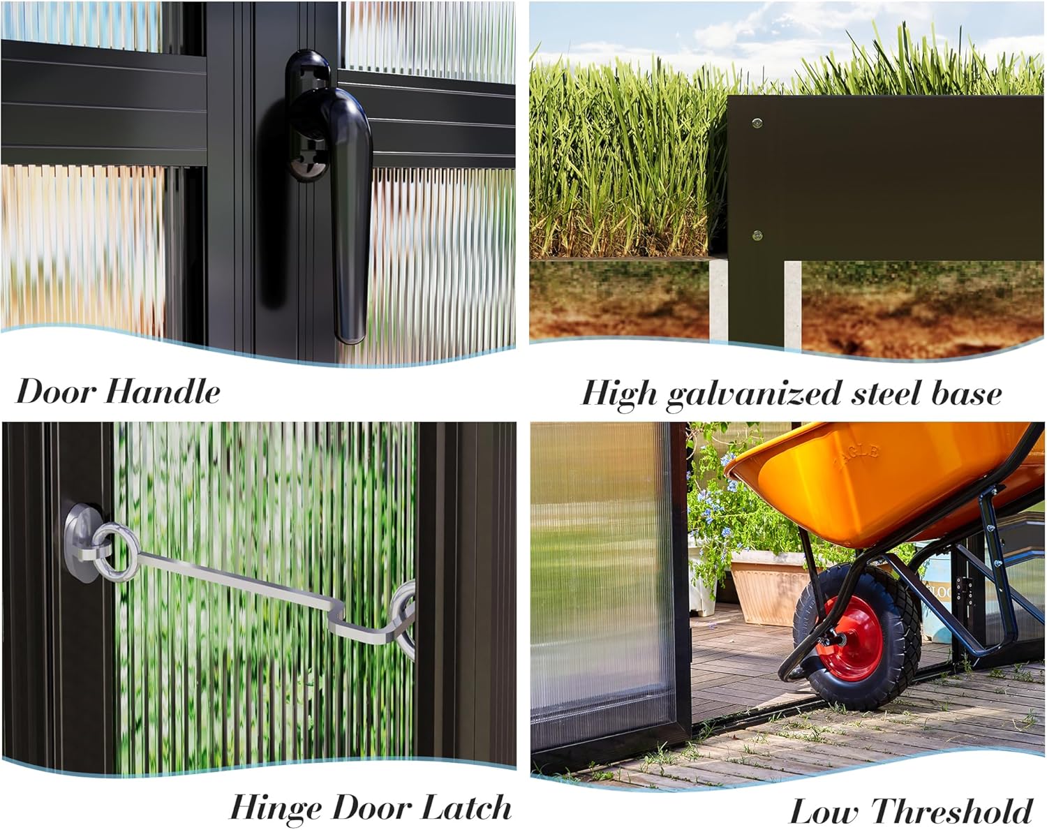 - 【Inserted PC Panel】 6mm twin-wall translucent polycarbonate PC panels, which exceptional 99.99% UV protection and warmth for a cozy environment to facilitate optimal plant growth.The 6-foot-tall widened hinged door offers effortless access for everyone.