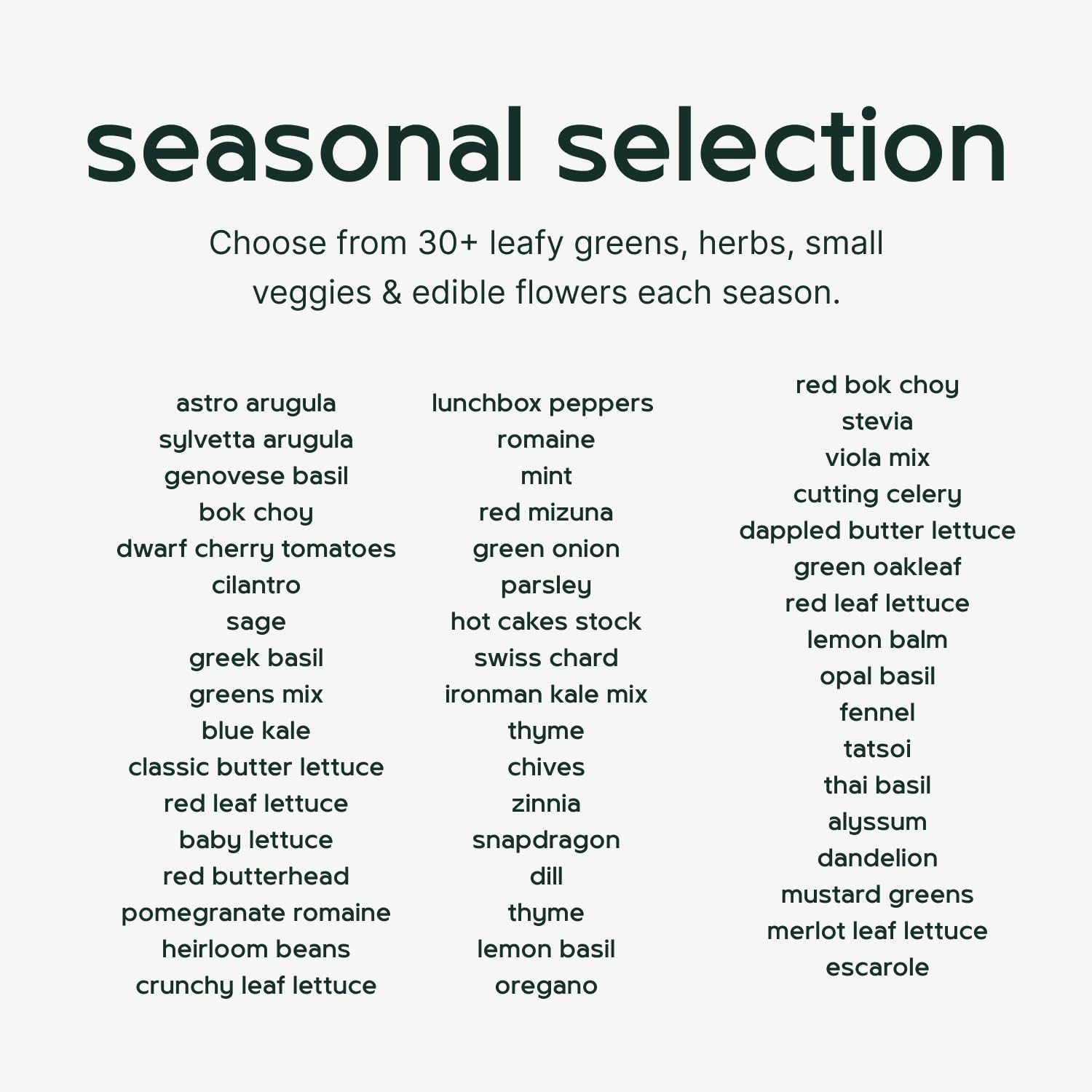 - Choose your plants: Comes with 20 live seedlings to start your harvest. Varieties are selected from a range of options and shipped separately from Lettuce Grow farms.