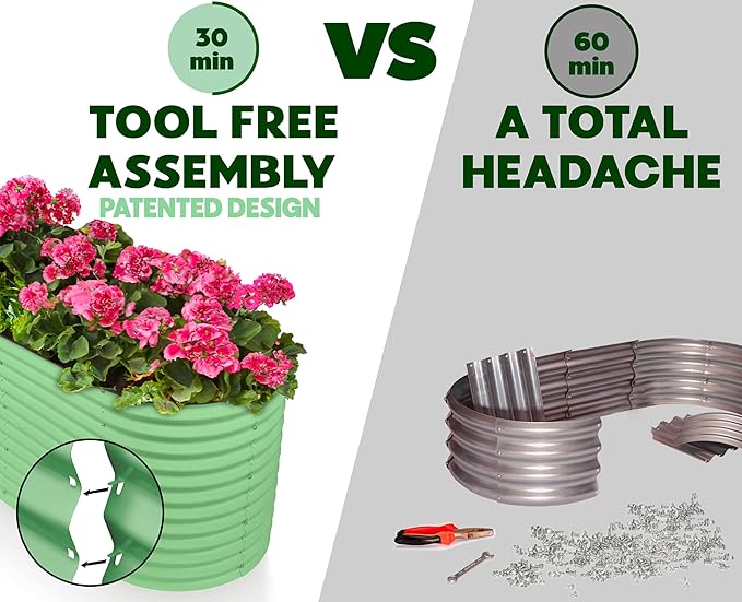 - EFFORTLESS ASSEMBLY, LIKE NO OTHER! Begin your planting journey by choosing our innovative patented design, featuring the perfect combination of easy assembly and durability. Thanks to our unique tool-free design, assembly is a breeze and can be completed in just 30 minutes! Get started on your garden right away and enjoy fresh, healthy produce in no time.