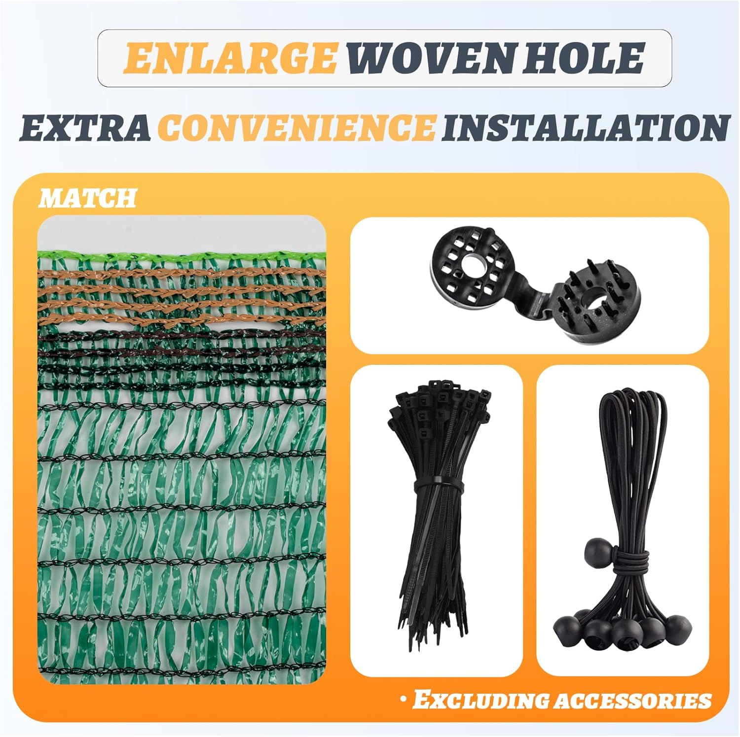 - 【Special Woven Hole Design】Made with new high density polyethylene (HDPE) material which Provides extra convenience for installation, garden shade cloth can block 40% of the sun and provide UV protection.