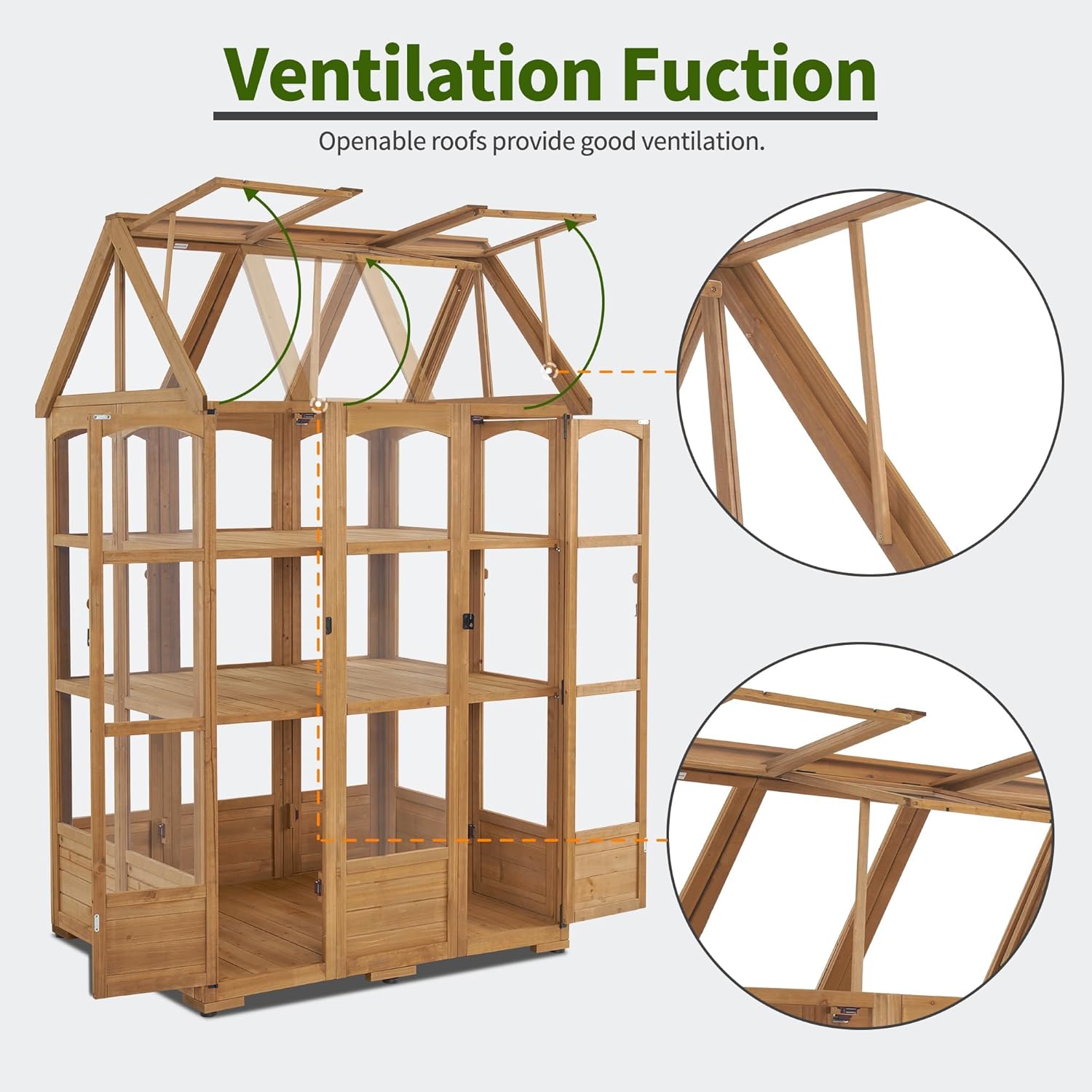- Openable Roof: The bolts on the greenhouse frame kit sides could be used to fix the roofs and keep them open to provide a healthy ventilation system for your plants in different weather