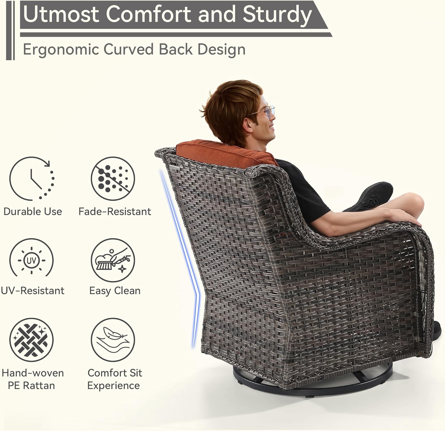 - [360° Swivel & Rocking] the two chairs can 360° swivel smoothly and rock back-and-forth to enjoy your leisure time to the fullest