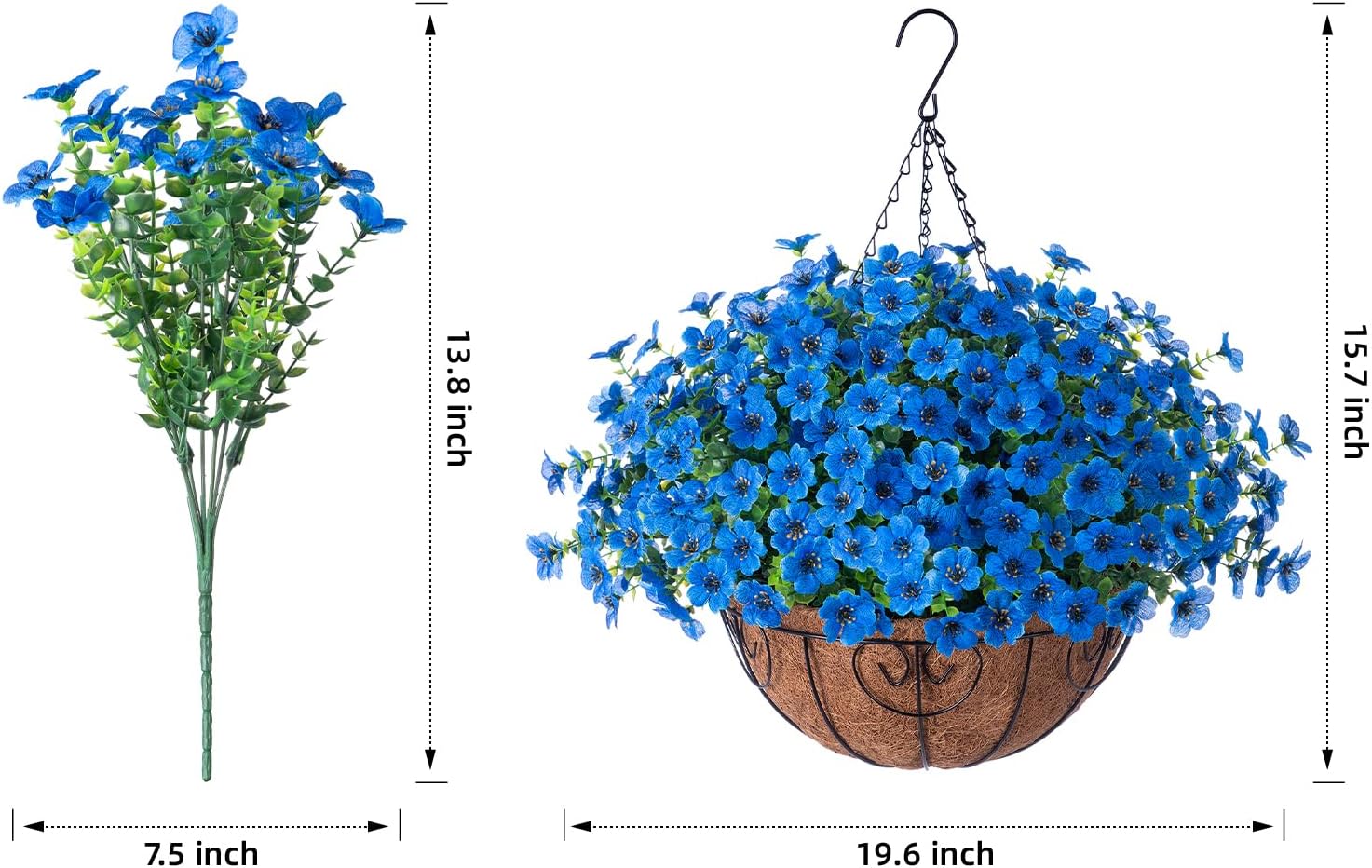 Artificial Fake Hanging Plants Flowers with Basket Outdoor Decor Faux Silk Daisy Flower Arrangements in Pot Planter for Porch Home Indoor Patio Garden Yard Decoration, Blue