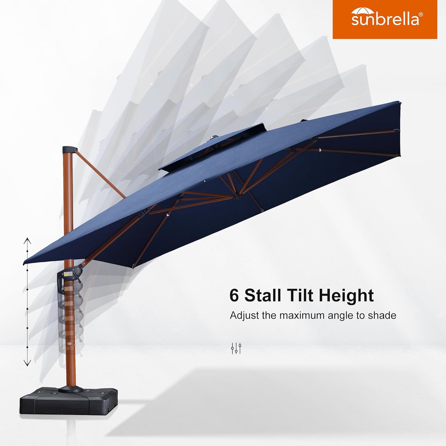 PURPLE LEAF 12' X 12' Double Top Deluxe Square Patio Umbrella - Offset Hanging Cantilever Umbrellas in Spectrum Indigo