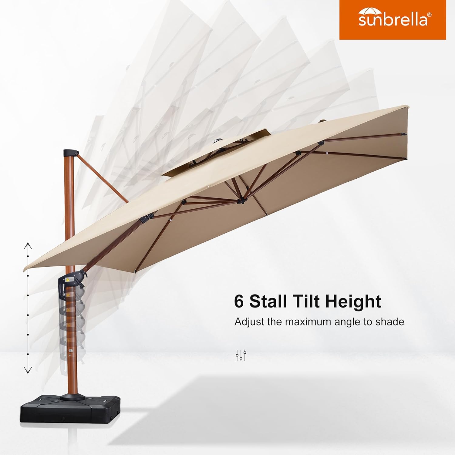 PURPLE LEAF 12' X 12' Patio Large Cantilever Umbrella Outdoor Wood Umbrellas Offset Umbrella Heavy Duty Sun Umbrellas for Garden Deck Pool, Heather Beige