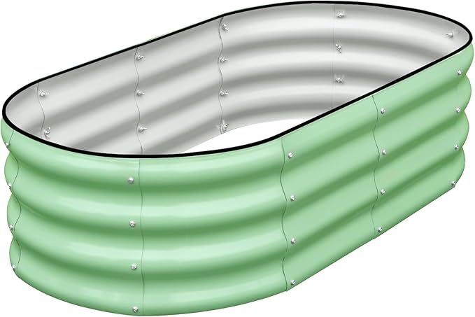 SnugNiture Galvanized Raised Garden Bed, 4x2x1ft Oval Metal Planter Box for Planting Outdoor Plants Vegetables