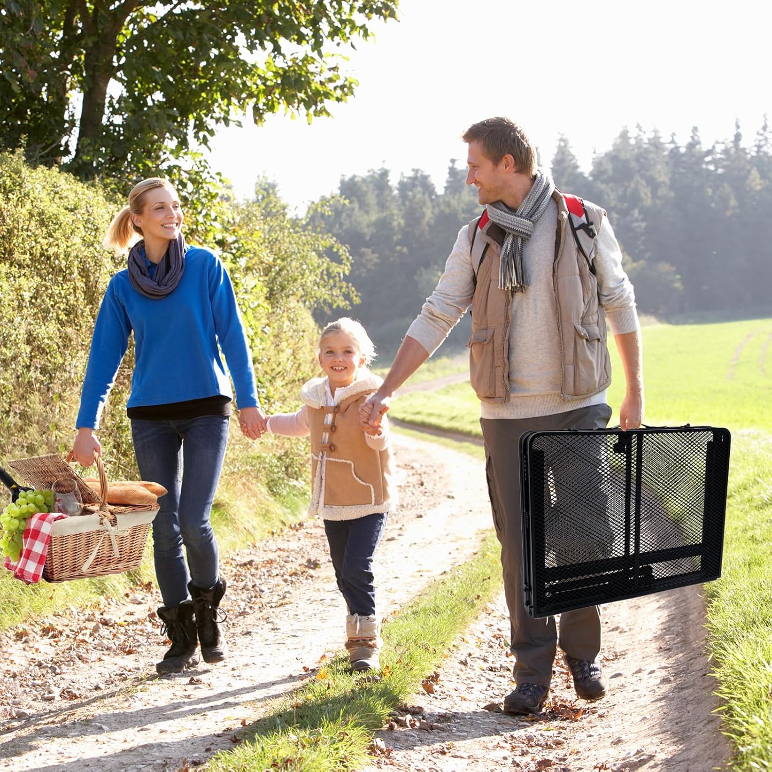- FOLDABLE & PORTABLE Easy to set up, folds down incredibly compact (23.7 ×17.7×2.56 inches). The novel mesh design is not only very attractive but also makes it light to carry with a weight of only 3.3 kg / 7.3 lbs. This portable folding table with carry handle is very convenient to carry to outdoor RVs, patio, beach, balcony and garden.