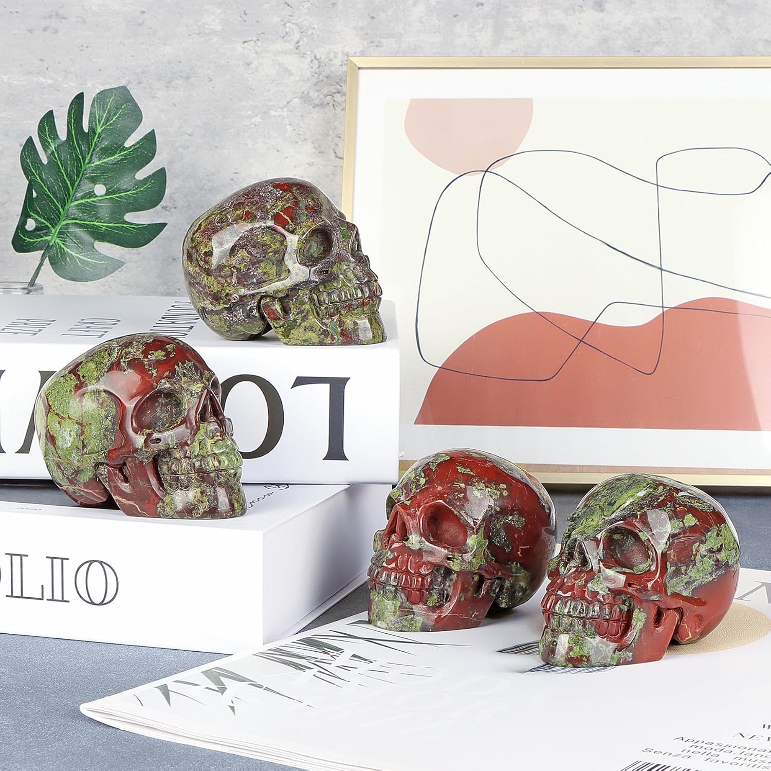 - 💀Great Day of the Dead Skull--Dragon bloodstone skull is made in quality crystal gemstone and carved well by exquisite craftsman.It is suitable to be placed on any mantel, bar decor,house,table or shelf,bringing elegance, fashion and sophistication to your home and office.