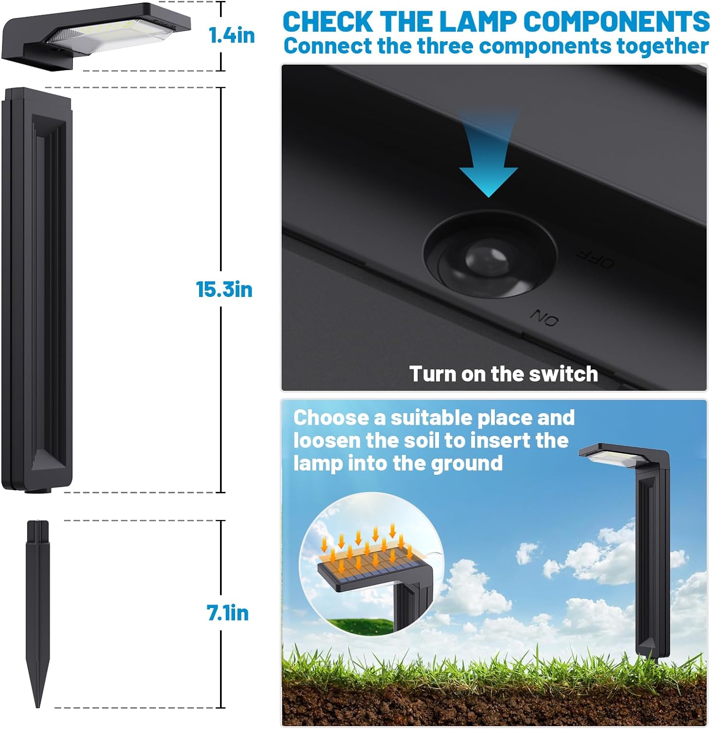 - ✅【Cordless Easy Installation & Warranty】Sunvivo outdoor solar pathway lights are so easy to install,just need to connect the three parts and insert to the ground.And the battery is easy to be replaced.It’s perfect guide light or decorative light for your various outdoor places such as lawn,garden,backyard,driveway,sideway,walkway or at outdoor event or party. 2-year warranty offered.