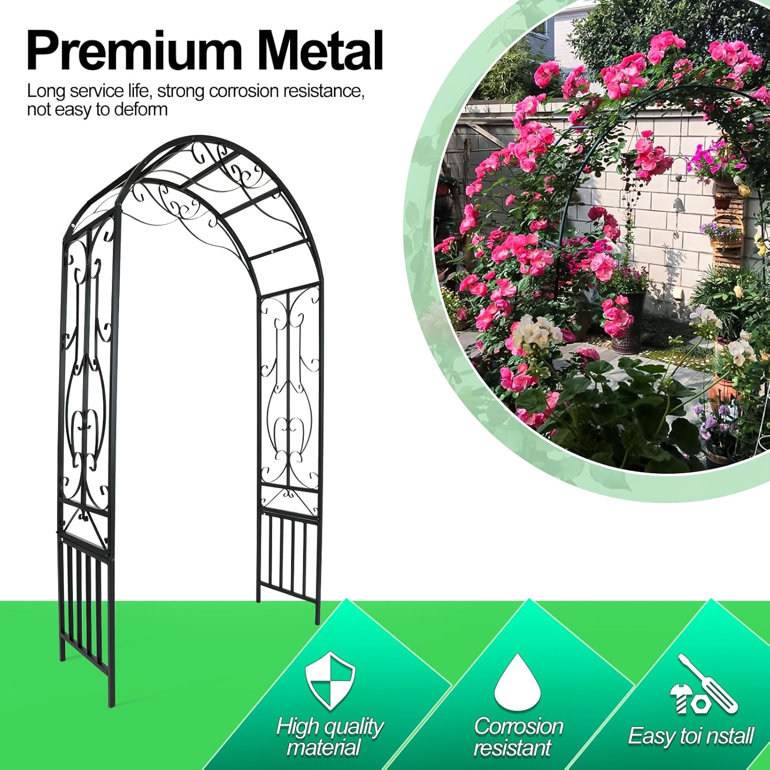 - Multi-purpose:Perfect garden archway for important celebration events such as weddings, anniversaries, birthday parties and Christmas decoration. You can decorate wedding arches for ceremony with flowers, balloons, lights or other elements to create a personalized backdrop.