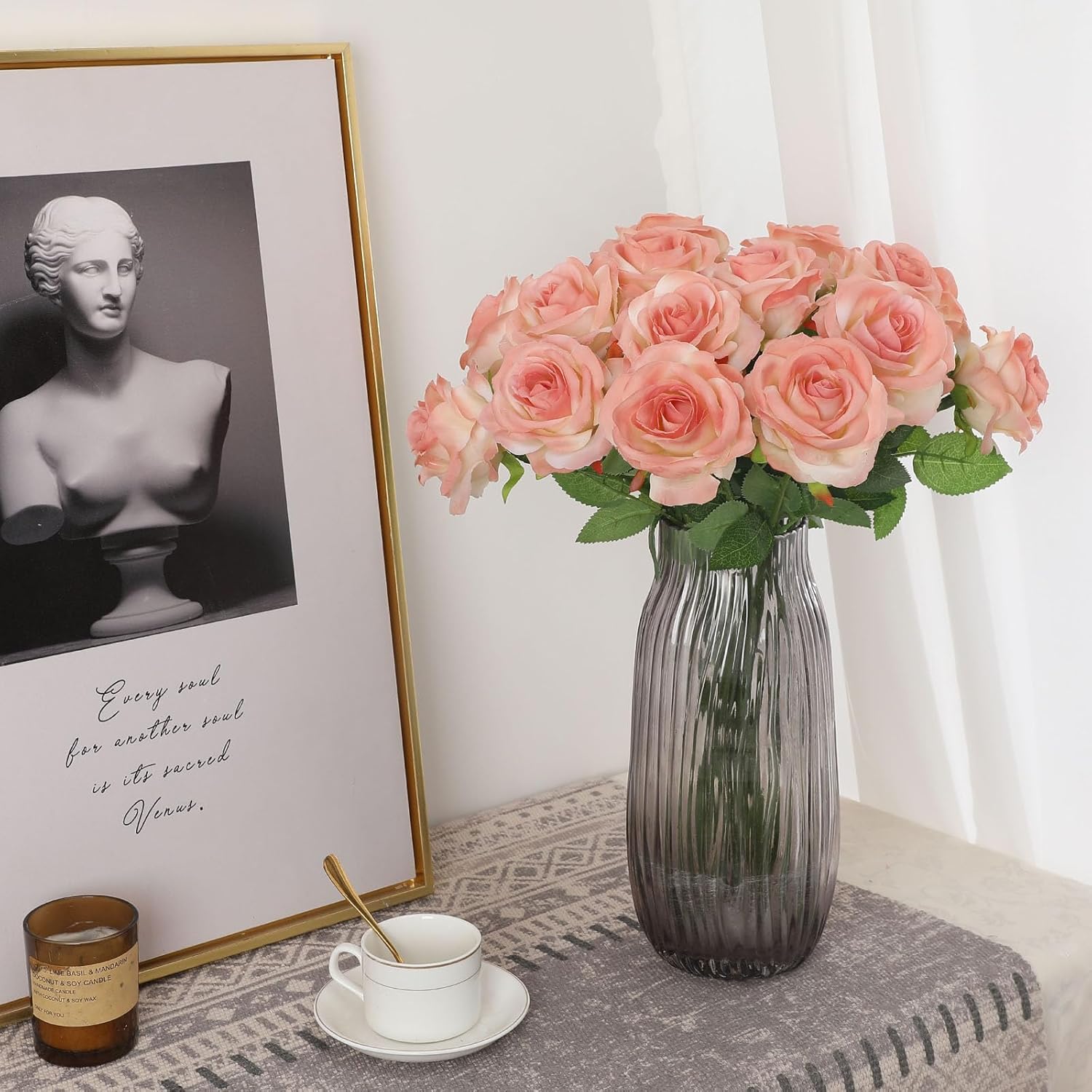 Pink Fake Roses Artificial Flowers - 10 Pcs Fake Artificial Roses Silk Flowers with Stems for Home Wedding Hotel Office Centerpiece Decor(Gradient Pink)