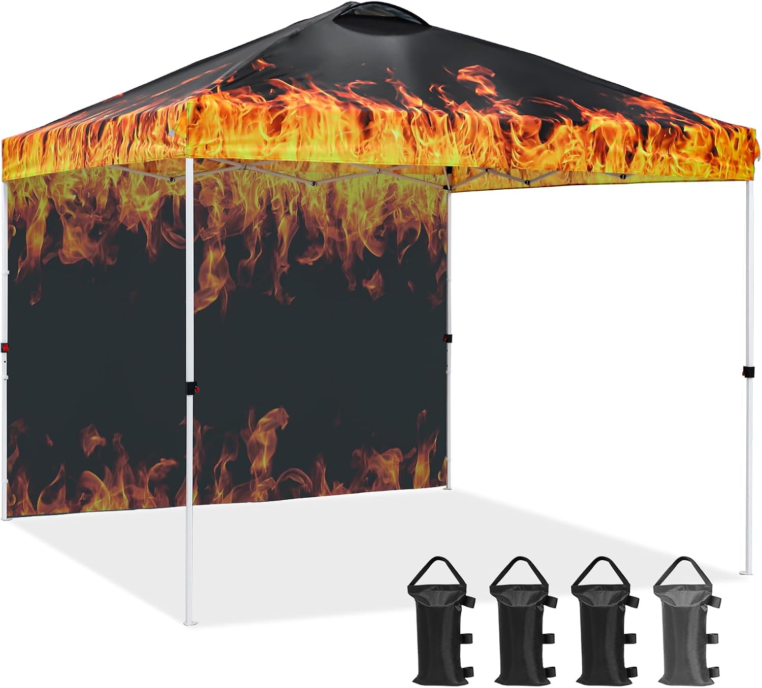 EAGLE PEAK Pop Up Canopy Tent with 1 Sidewall, Easy Setup Event Tent, Outdoor Sun Shade, Wheeled Carry Bag, Stakes and Guy Ropes, Instant Canopy 10x10, Flame