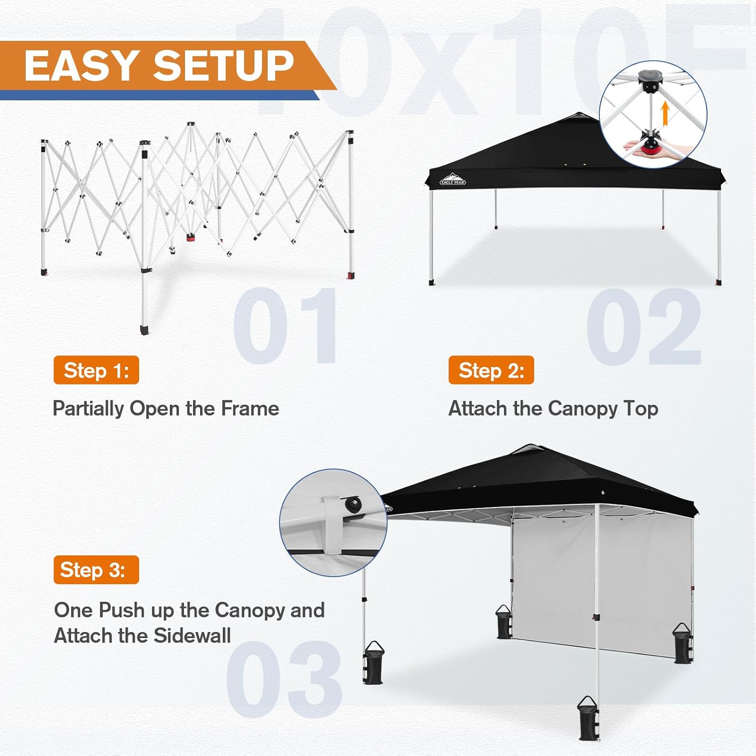 - EAGLE PEAK PROMISE: EAGLE PEAK offers a 1-year limited after sale protection from the original date of purchase. Unlike many other canopy manufacturers, EAGLE PEAK offers this for our frames, canopies and bags! If you have any other questions, please contact our professional service team.